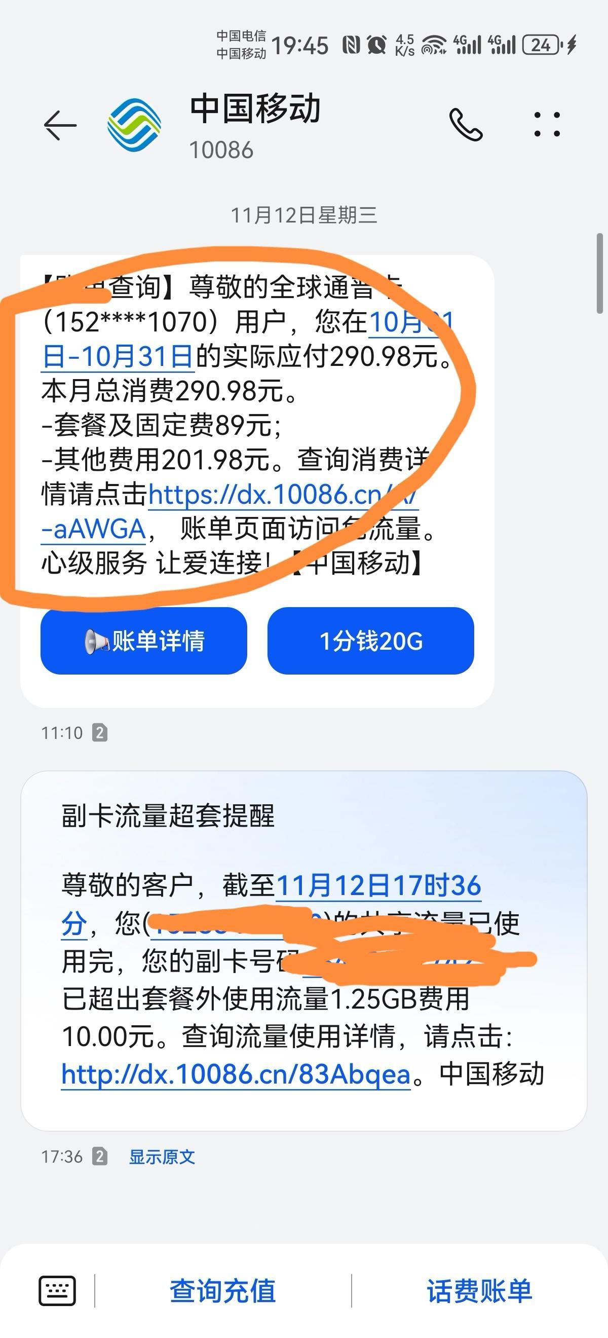 作为销售老油条,我有话要说, 吐吐槽: 中国移动真牛叉, 每月话费都这么高。 我不喜欢移动, 可是为了办宽带, 小区宽带被移动垄断, 没有移动号码也不行。 我的电信卡, 月套餐49元, 流量不限, 通话1000+6000分钟, 移动电话卡, 89元办宽带, 180分钟+30g流量。 关键是流量超出部分这价格贵的要死, 流量超出一点儿就5元, 不是为了宽带, 我坚决不办移动卡。 条友们觉得呢?中国移动 移动套餐陷阱 移动通信套餐 中国移动卡 移动乱扣话费 移动联通话费 移动宽带避坑