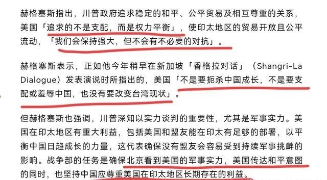 美国确实变了,美国国防部长赫格塞思出来表态了!12月8日,根据岛内媒体报道,美国国防部长赫格塞思表示,美国将以实力,而非对抗来吓阻中国,美国在印太地区的部署,不是为了支配中国,而是要确保中国无法主宰美国或其盟友,美方也无意改变台湾现状。川普政府追求稳定的和平、公平贸易及相互尊重的关系。 赫格塞思在里根国防论坛上发言,强调美国通过实力威慑中国大陆,而非直接冲突。他指出印太部署维护盟友权益,不针对控制中国大陆扩张。演讲中重申追求力量平衡,避免主导地位。美国海军南海行动保护航道自由,与伙伴国共享情报回应岛礁活动。他尊重中国大陆经济举措,但确保不损害贸易安全。 在台湾问题上,美国坚持现有格局,继续供应防御武器如导弹系统,仅为自卫用途。特朗普政策框架下,注重和平贸易和认可关系。国防部职责让北京认识到美国能力,同时表达合作意愿。 基地扩建提升响应,如战机部署。他避免摩擦,通过热线减少误判。预算投资技术匹配挑战。演讲后与澳大利亚官员会晤,讨论合作项目。 美国策略包括四方对话机制,与日本韩国印度协调巡逻和情报。演习模拟防御场景,应对潜艇威胁。援助扩展到网络培训,提供工具抵御攻击。历史存在如基地网络升级支持通信。现代化要求调整,但回应防御性。 合作协议允许舰艇访问港口增强监视。政策微调承认影响力上升,强化网络。避免指责事件,聚焦平衡。外交途径推动对话。经济上推动制造回流,减少依赖,包括盟友投资。这些元素传达实力与克制。