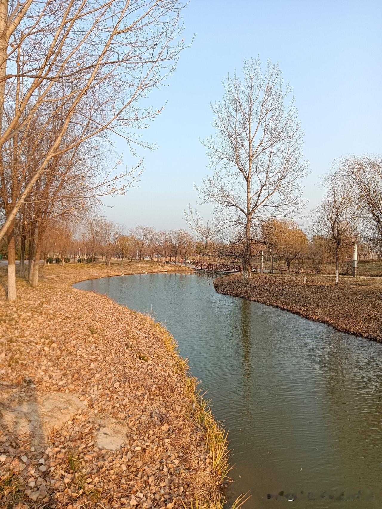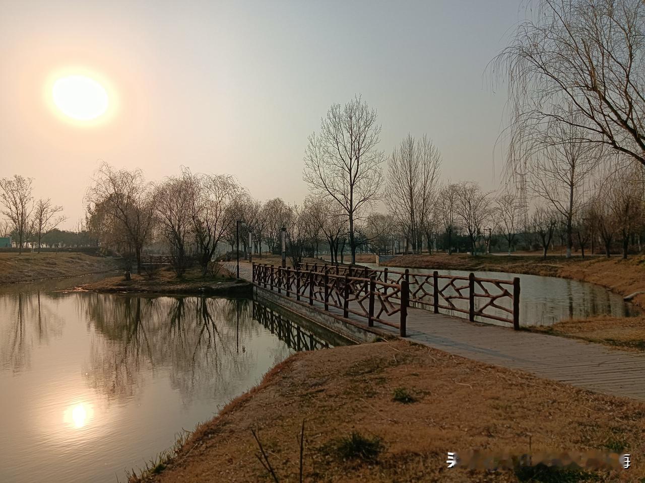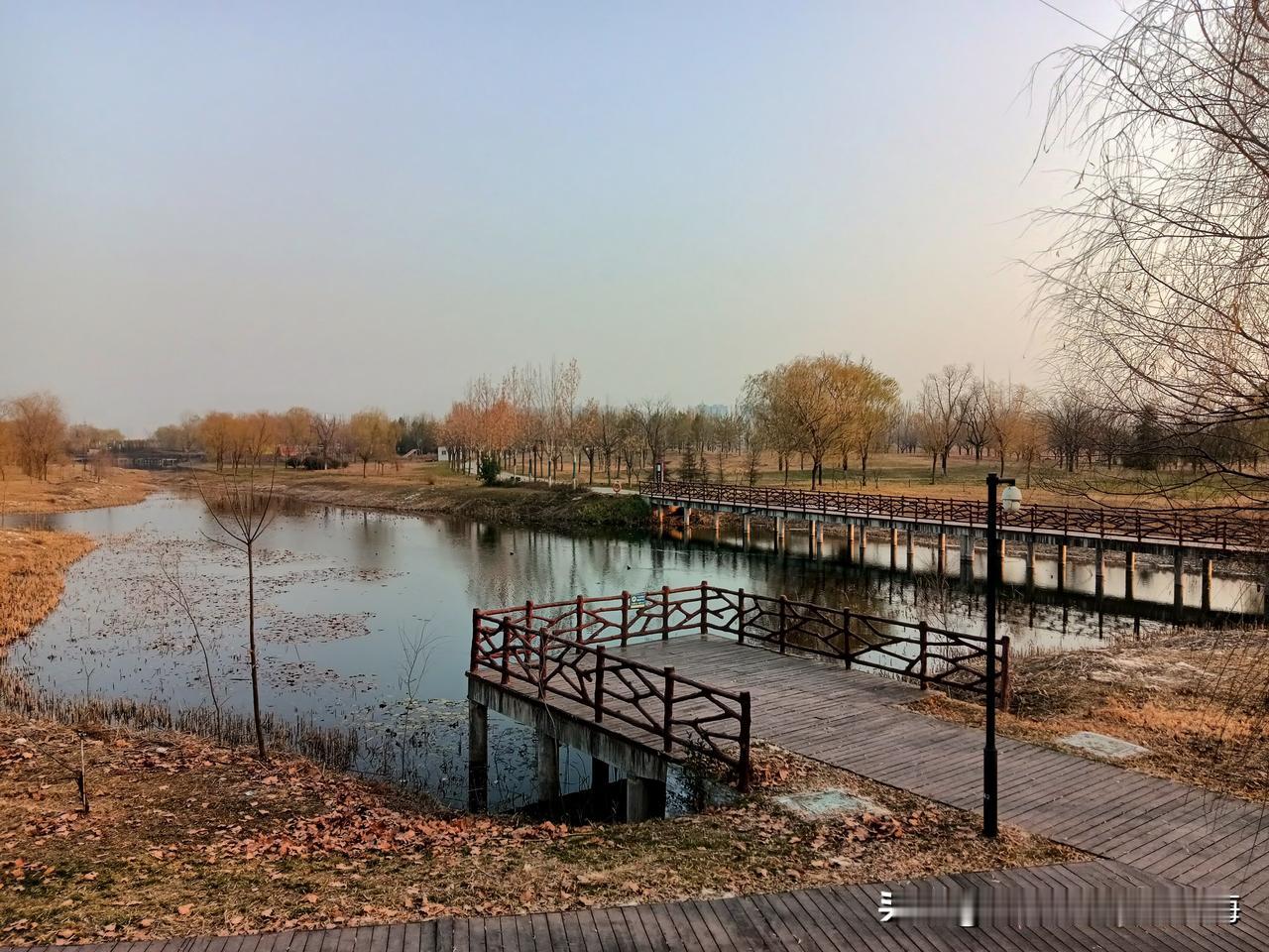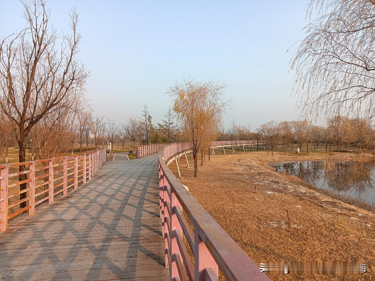 朝我这儿看,这里是咸阳的秦汉新城渭河湿地公园,一个离地铁14号线秦宫站很近的自然生态区!公园面积还是挺大的,但却是一个一应俱全有丰富容量的绿地园林!我来过两次,分别是夏季和秋季,但在深冬时节来还是第一次!别看现在已经是12月的天,但暖阳下幽静的公园湖岸边还是少不了钓鱼者,还有那个长长的木制栈桥你走一走很有一番情趣!渭河生态景观带 咸阳公园 秦汉新城区