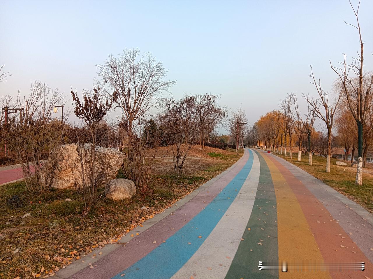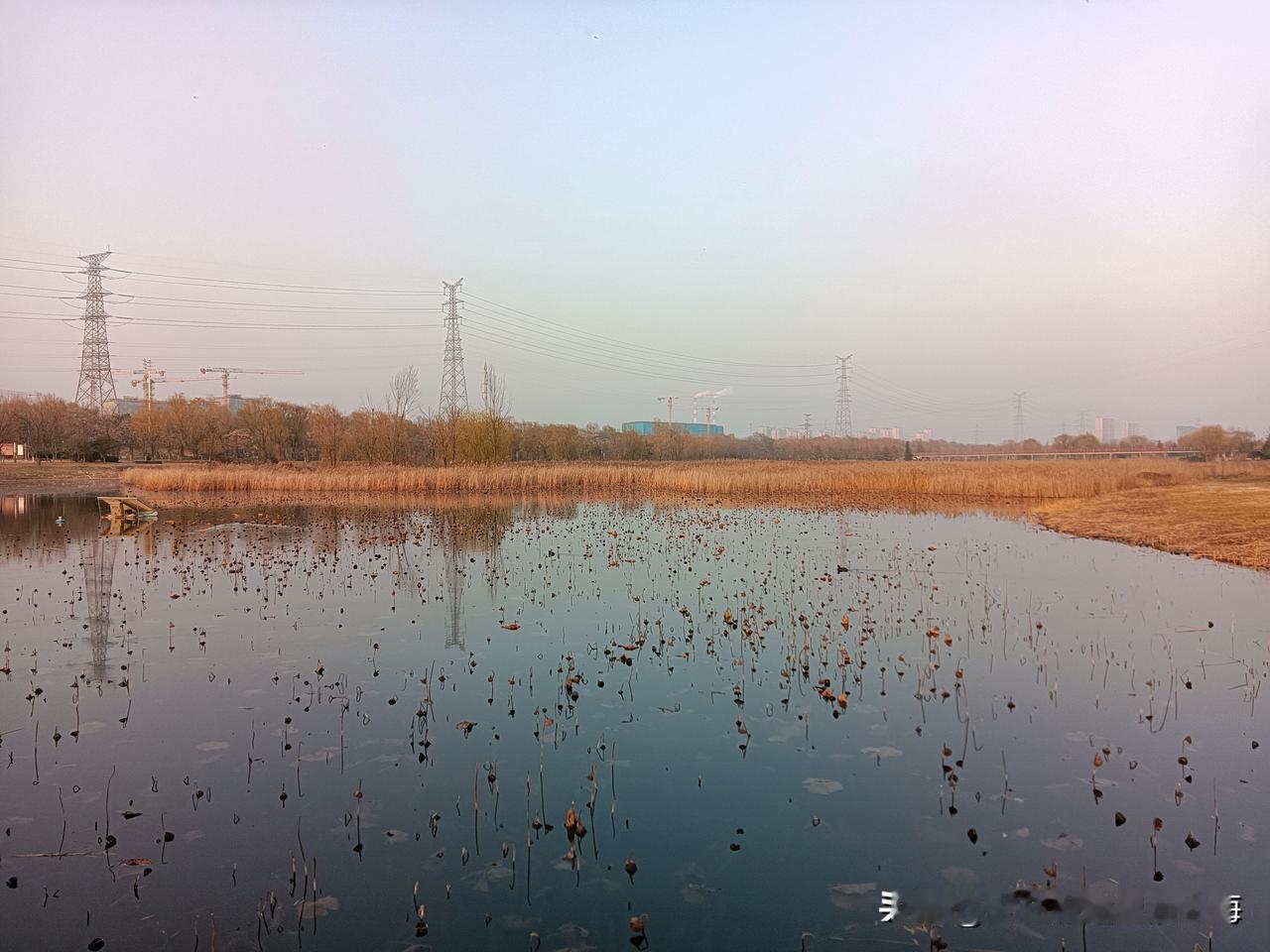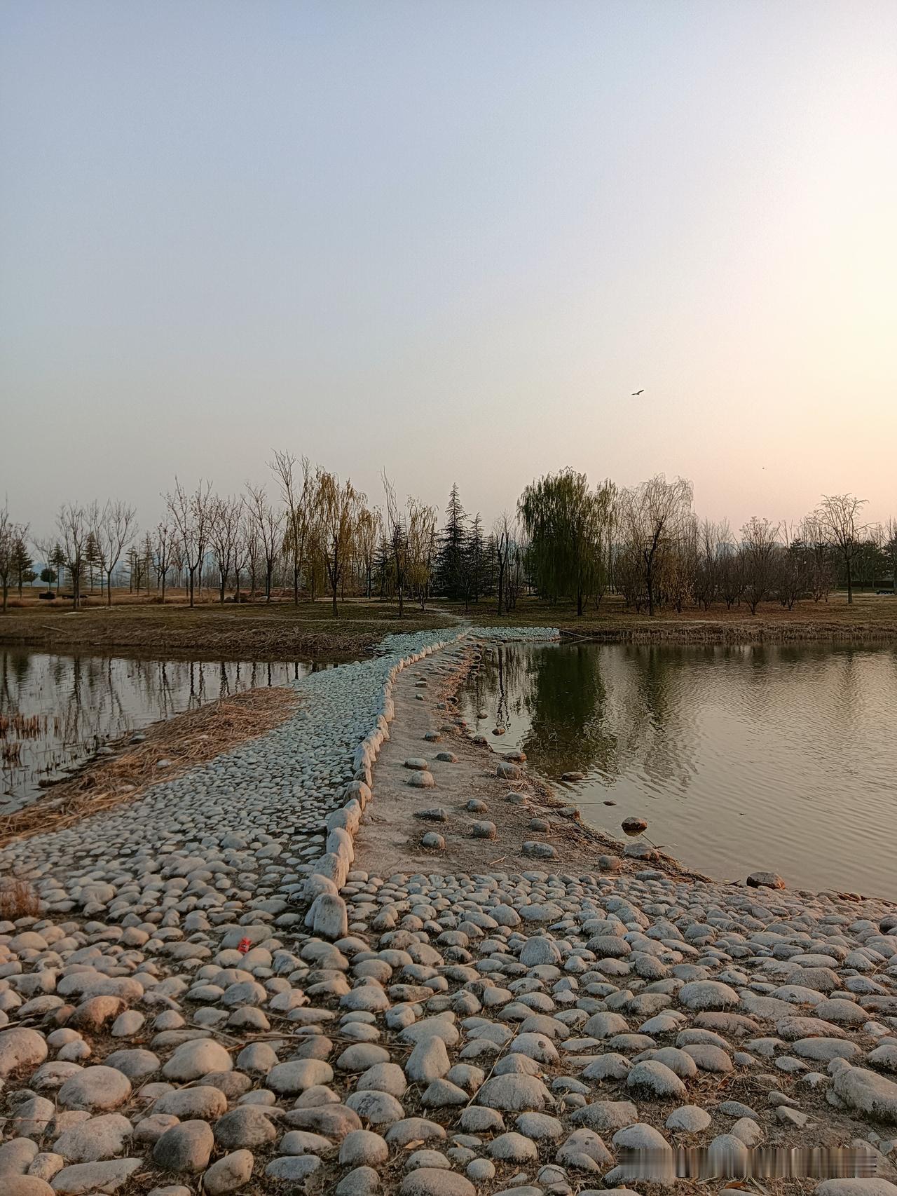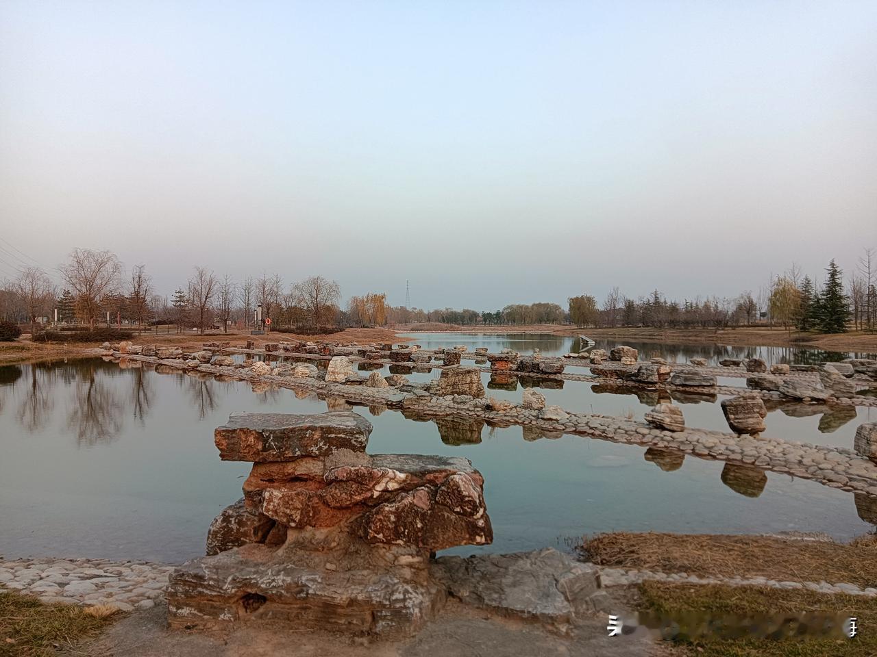 朝我这儿看,这里是咸阳的秦汉新城渭河湿地公园,一个离地铁14号线秦宫站很近的自然生态区!公园面积还是挺大的,但却是一个一应俱全有丰富容量的绿地园林!我来过两次,分别是夏季和秋季,但在深冬时节来还是第一次!别看现在已经是12月的天,但暖阳下幽静的公园湖岸边还是少不了钓鱼者,还有那个长长的木制栈桥你走一走很有一番情趣!渭河生态景观带 咸阳公园 秦汉新城区