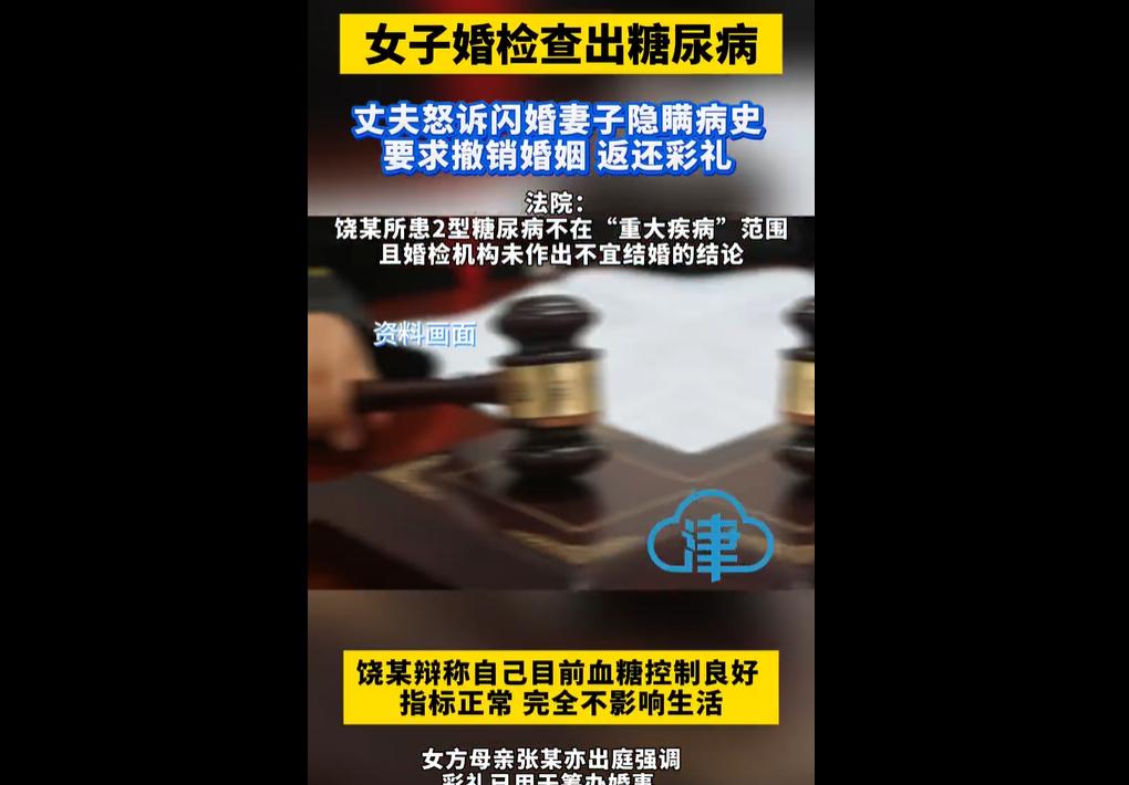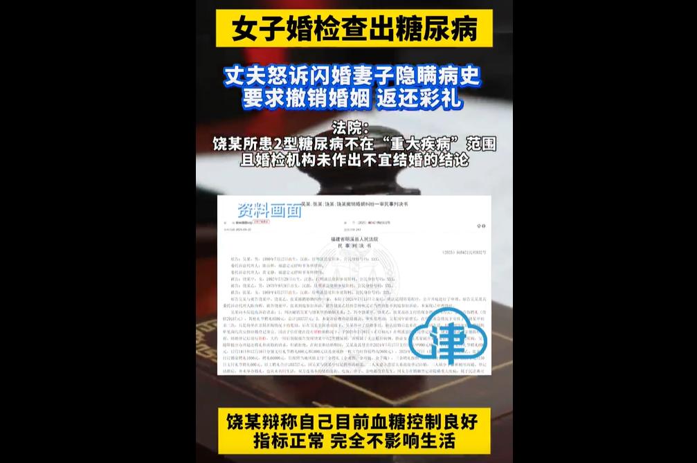 相识一年仅见面数次的吴某与饶某,经相亲于 2025 年 2 月仓促登记结婚,领证当日吴某发现饶某婚检报告显示有 2 型糖尿病病史,称婚前对此不知情,认为对方隐瞒重大疾病,起诉要求撤销婚姻并返还 10 万余元彩礼。 庭审中,饶某辩称已告知病史且病情可控,其母称彩礼用于婚事不应返还。 法院审理认为,2 型糖尿病不在《民法典》可撤销婚姻的 “重大疾病” 范围内,婚检也未建议不宜结婚,一审驳回吴某全部诉求。 法院这判决算拎得清! 法律界定 “重大疾病” 有明确标准,参照《母婴保健法》就是看是否属严重遗传病、特定传染病或重型精神病,2 型糖尿病确实不在此列,总不能凭个人觉得 “严重” 就乱套规定,这才是讲法治不搞情绪化判案。 女方母亲说彩礼用在婚事上,也符合司法实践中 “彩礼已实际消耗可不予返还” 的原则,没毛病。 但这事也透着别扭! 相亲闪婚本就没感情基础,女方就算没隐瞒病史,婚前也该主动说清楚 —— 糖尿病虽不算法定 “重大疾病”,但长期可能引发视网膜病变、肾病等一堆并发症,确实影响婚后生活。 男方被蒙在鼓里起诉,虽于法无据但于情可理解。 更该敲醒的是相亲婚姻:别为了结婚而结婚,信息透明比彩礼数额更重要,不然结了也是埋雷,早晚得炸!