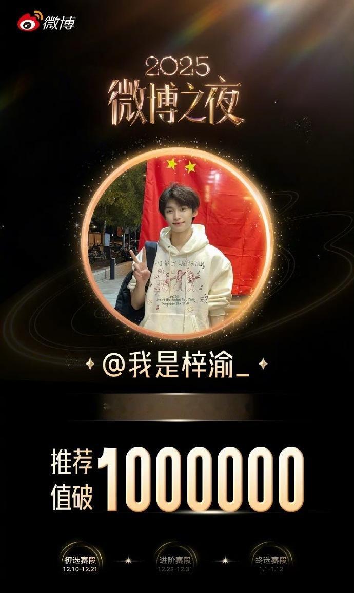 田栩宁、梓渝星光人物初选赛推荐值破100万