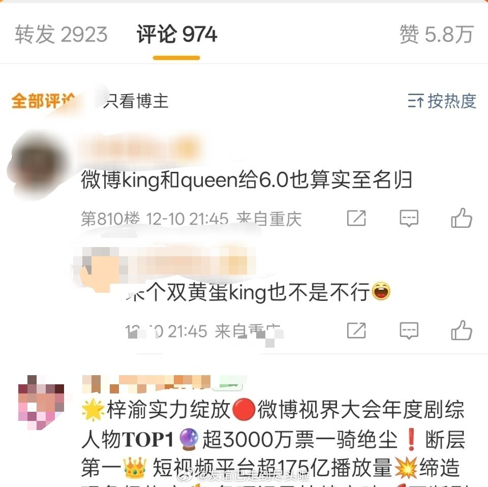田栩宁星光人物推荐值破100万看到一个网友评论说不如吧微博king和queen颁给他俩,然后还有网友回复说来个双黄蛋微博king也不是不行