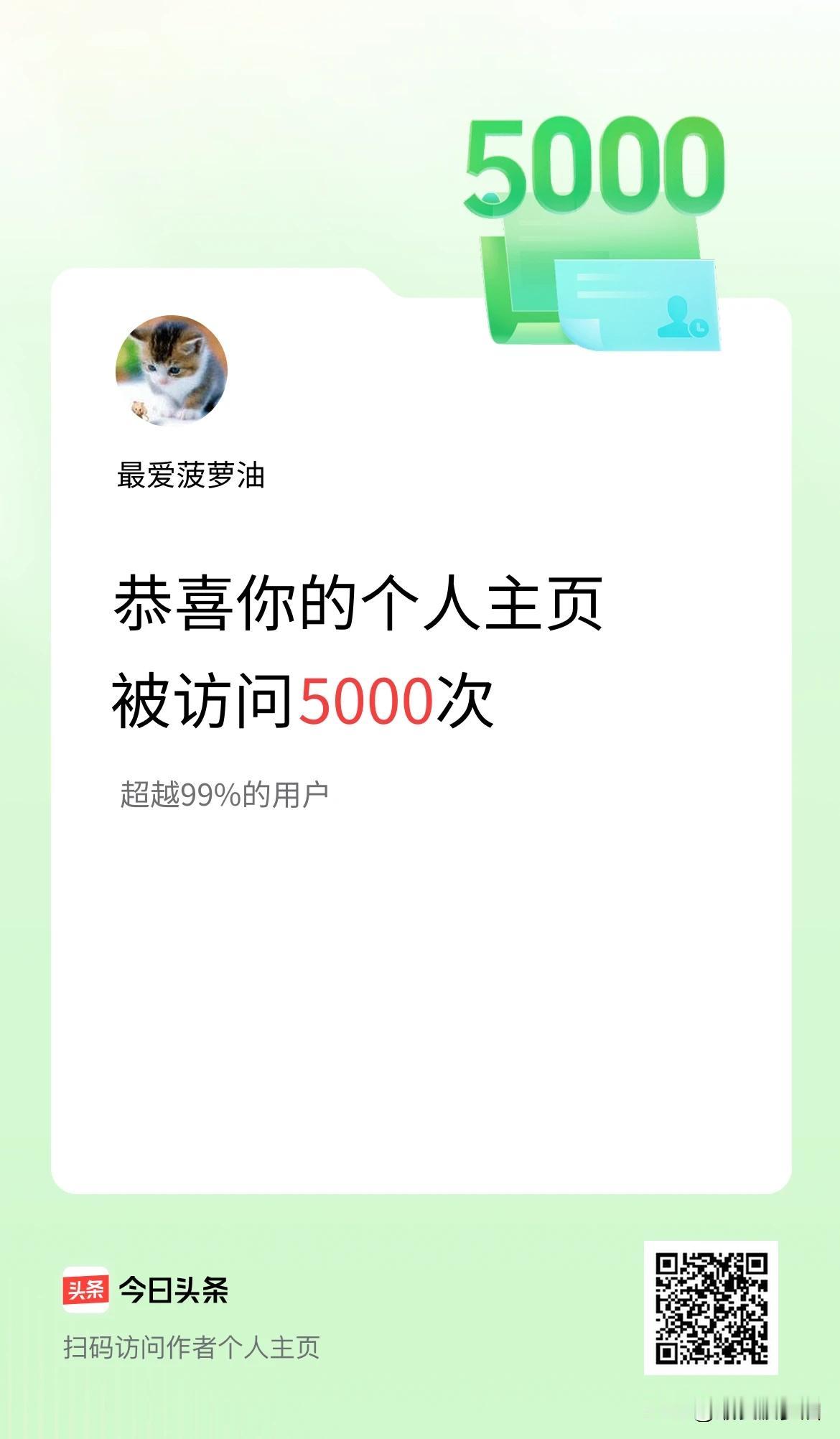 喜提被访问5000次!超越99%的用户!骄傲吗? 下午浏览头条时,突然弹出消息提示:“最爱菠萝油,恭喜你的个人主页被访问5000次!超越99%的用户!” 最近几乎每天都会弹出消息提示,像什么“恭喜你累计评论破10万次”、“恭喜你已连续投稿200天“、“恭喜你的单次发评阅读量破10万”……简直就是五花八门,应有尽有啊! 而这次收到的是“恭喜你的个人主页被访问5000次”,弱弱的问一句,能不能给点实质性的东西,比如奖金5000块(貌似有点狮子大开口了哈),又或者流量包(5000流量包听起来还不错哦),再不济展现量高一点(5000展现量好像也不多,50000也不怎么稀罕,500000也还行,5000000我倒是想拥有一下)…… 别整天干巴巴的只给一句:“超越99%的用户”,这话听起来跟画大饼似的,还是个印度飞饼,不仅大还会飞。 喜提被访问5000次!超越99%的用户!骄傲吗? 其实我就不爱这些虚的,不如给点实质性的奖励吧!就问一下能不能有?不能的话,我下次再来问吧! [我想静静][捂脸][强][笑哭][捂脸][我想静静][强][笑哭]