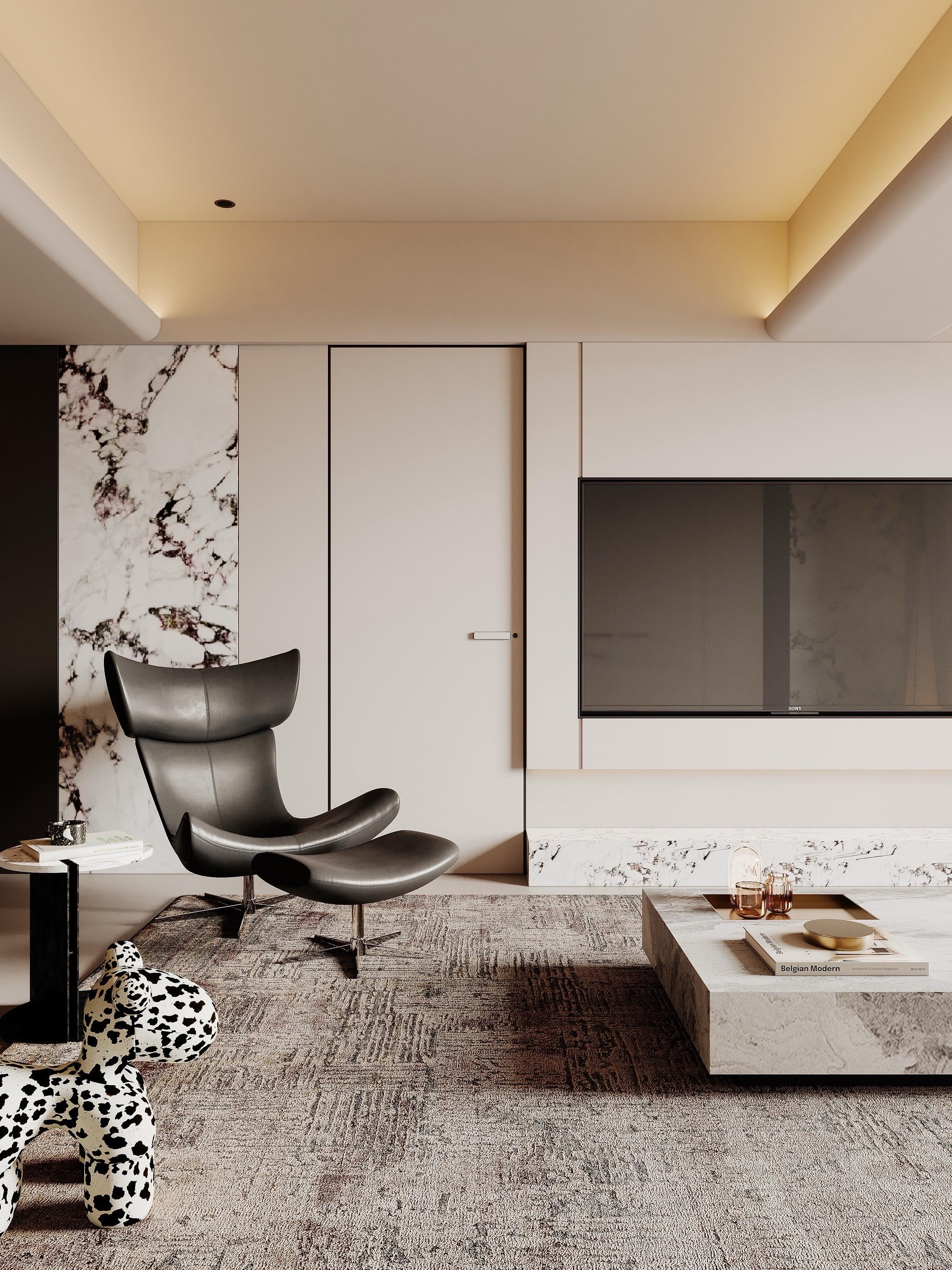 基础色(背景色 - 60%):浅米白、高级灰。用于墙面、地面、天花板...