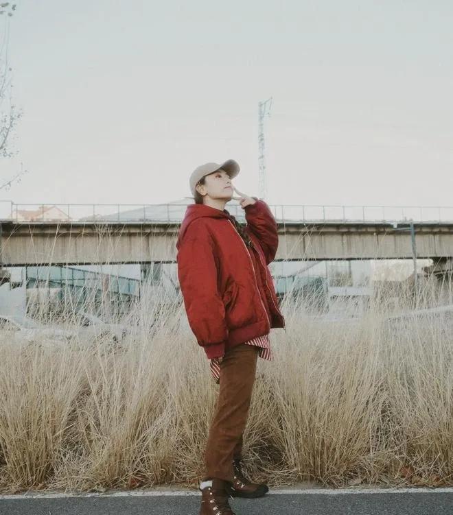 白冰这冬日穿搭,是把“松弛感”焊在身上了吧🍂 酒红棉服叠穿红条纹衬衫+黑内搭,配焦糖棕灯芯绒裤+工装靴,同色系层次感直接拉满! 棒球帽+编发的细节,把冬日街头的慵懒随性拿捏得死死的,这氛围美到想直接照搬整套搭配~