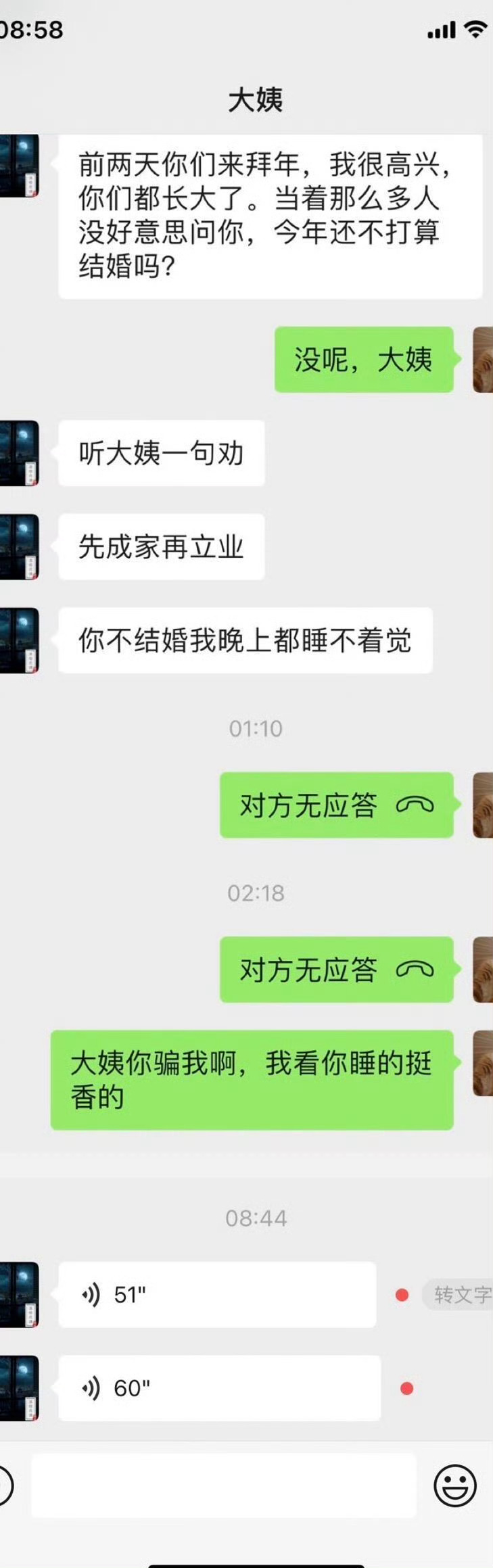 你不结婚我晚上睡不着她说睡不着,我就想晚上跟她谈谈心,顺便问问能支持哪些资源什么的,结果人家好像睡的挺香的。语音还没听,感觉应该是快板吧……