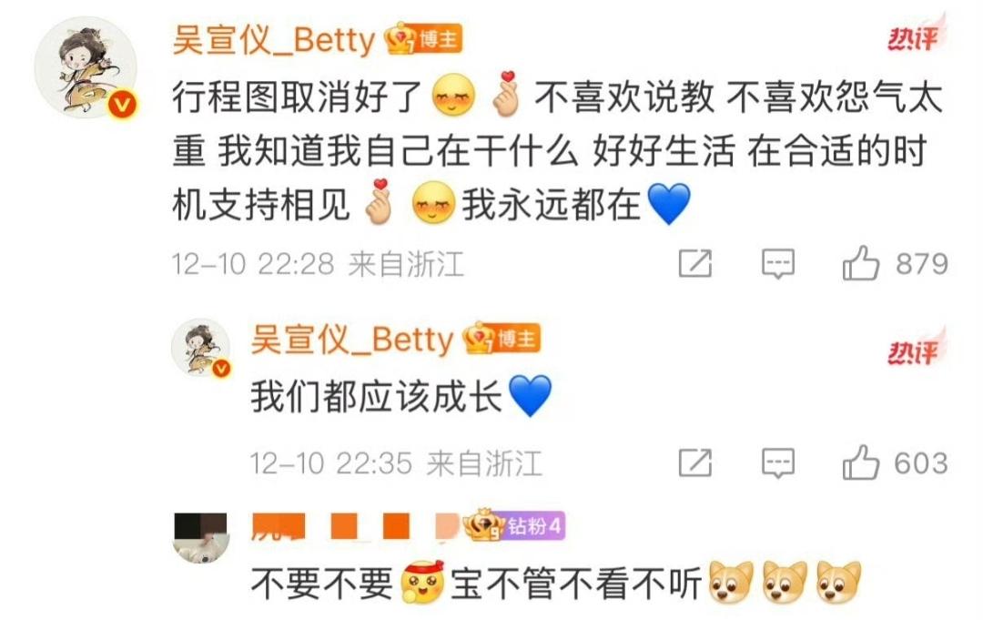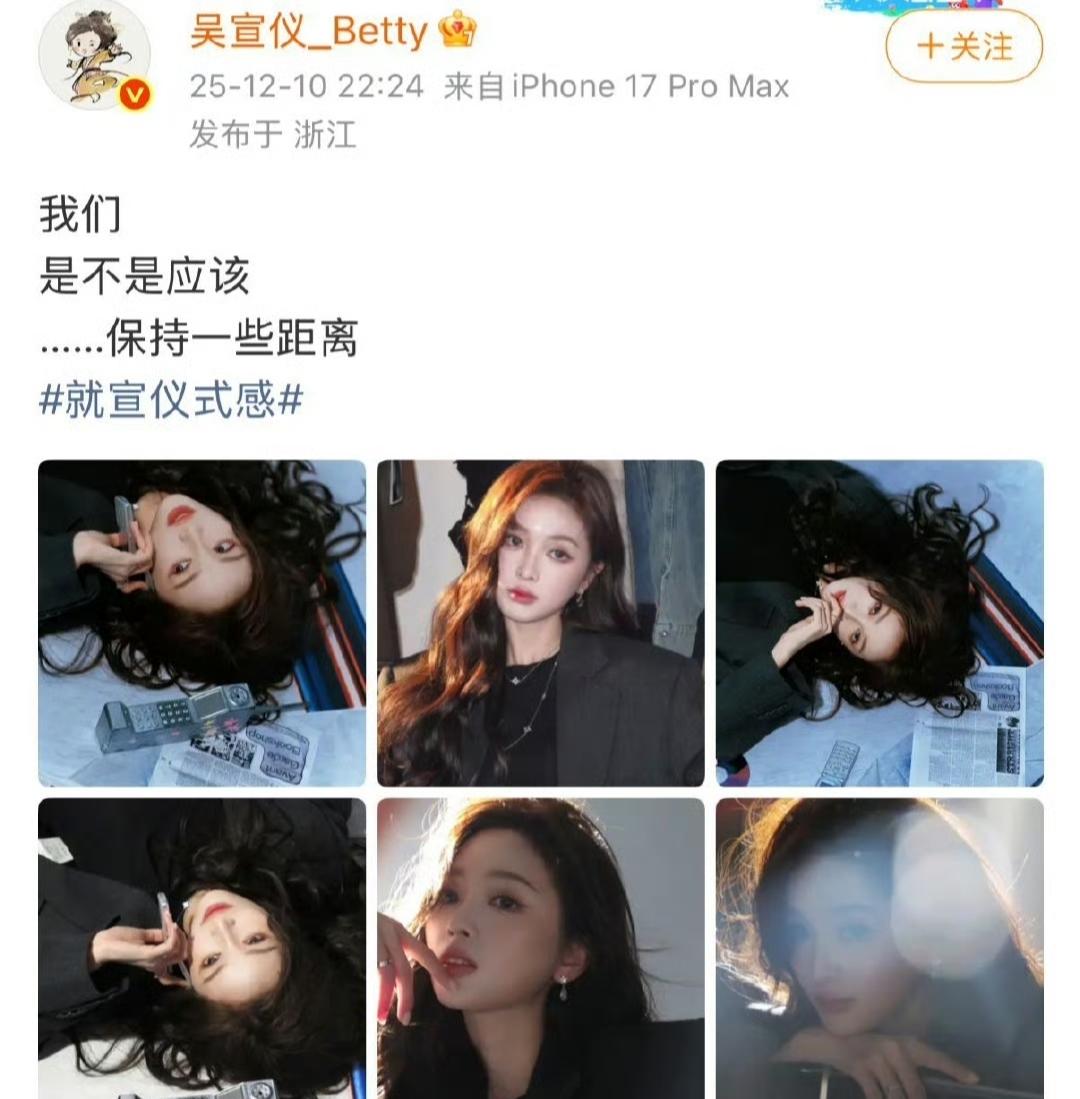 吴宣仪在自己账号跟粉丝说,希望保持距离,然后在评论区又说行程图取消好了,自己不喜欢说教 不喜欢怨气太重,自己知道自己干什么,要好好生活。希望和粉丝在合适的时机相见。 挺好的,我觉得吴宣仪这个想法特别棒。 明星就应该跟粉丝保持距离,用作品说话。 天天被粉丝指手画脚,那算什么? 其他明星不好意思开口,吴宣仪撕开了这个遮羞布,粉丝们应该懂点事了。