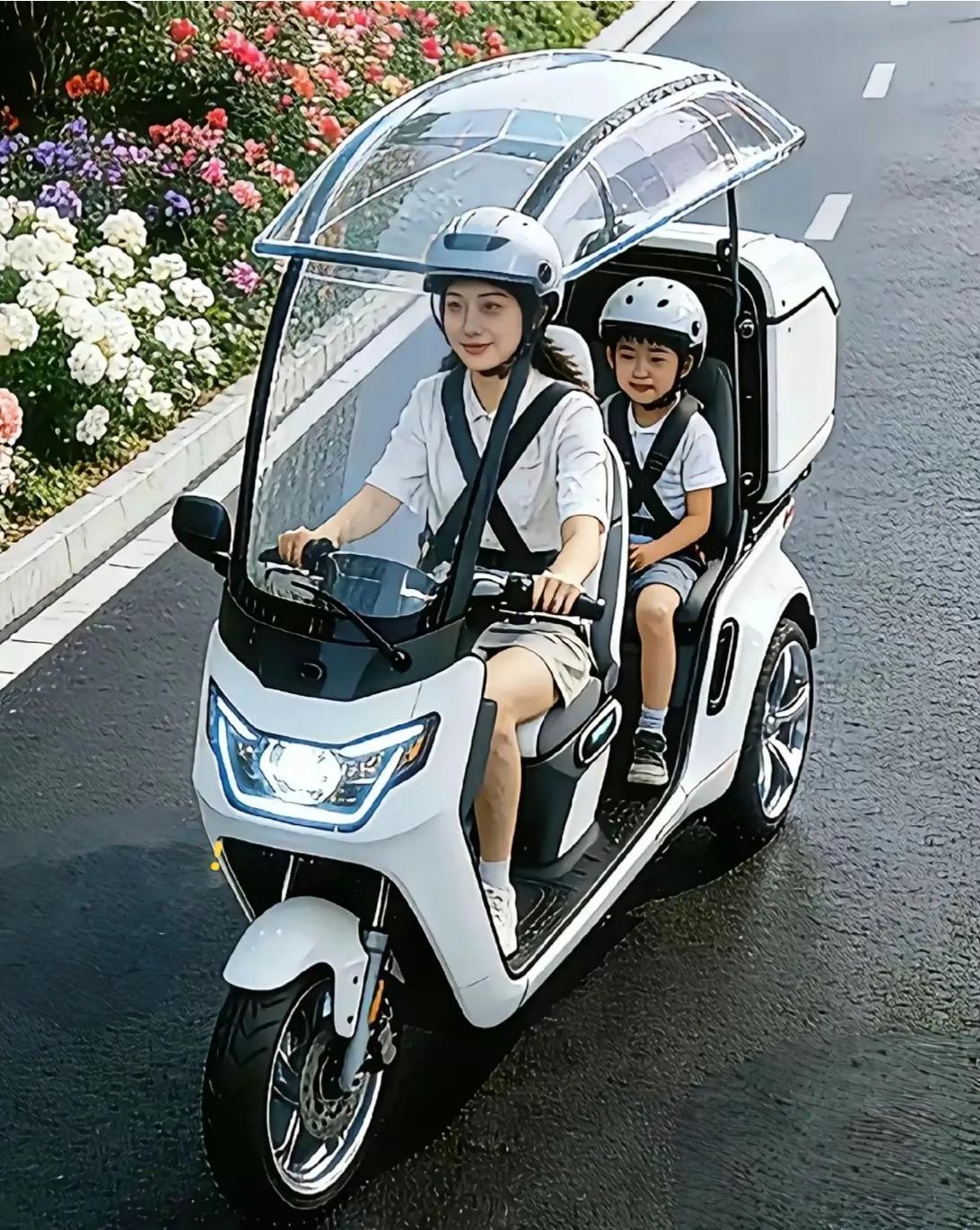 建议把国标电动车换成这样,肯定很受欢迎。如果后面在宽一点更喜欢,两个小孩坐后面,还可以遮风挡雨比汽车环保,比两轮电动车稳。 和孙颖莎搭在一起新电动车新规