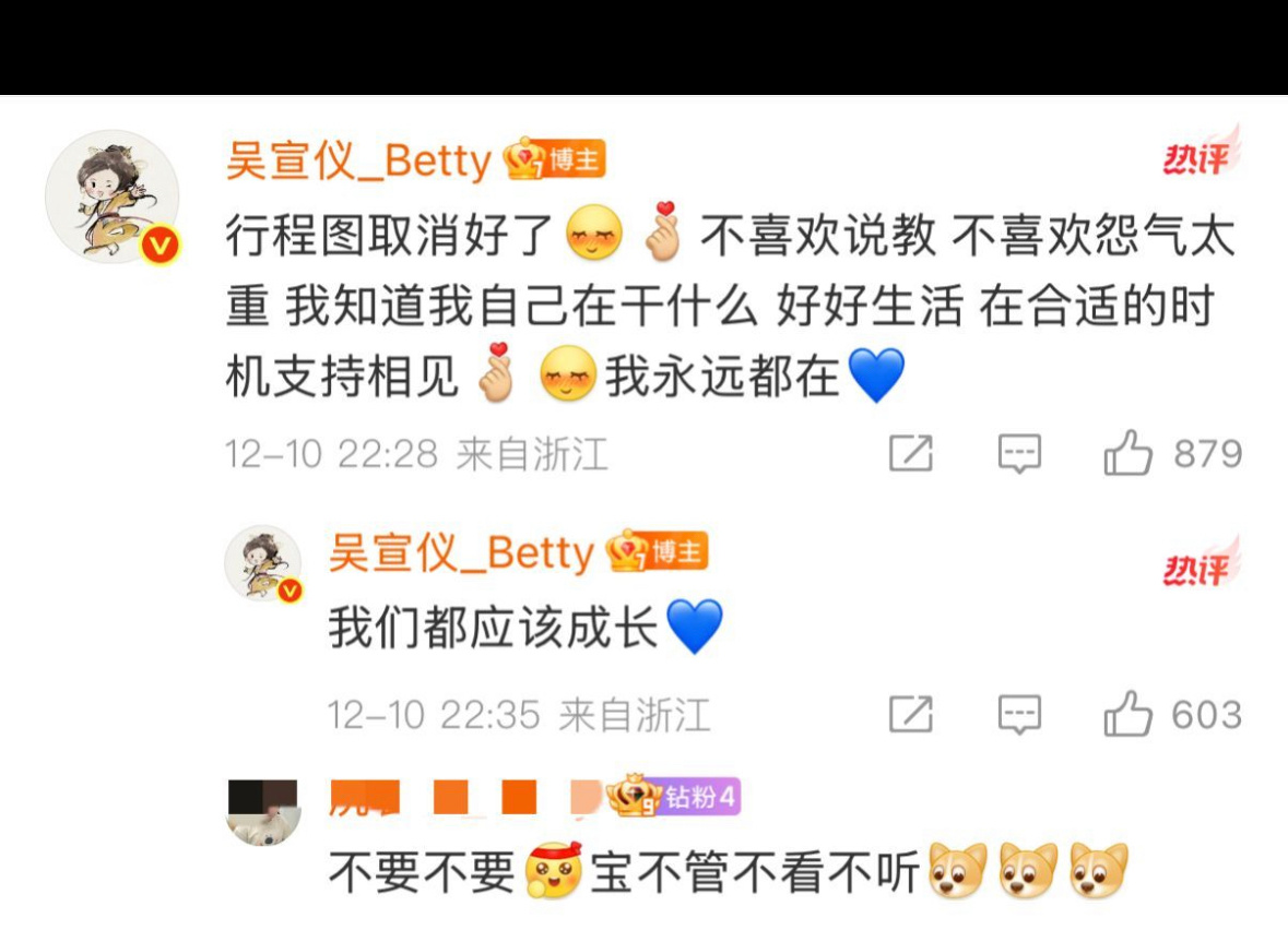 吴宣仪发微博说:我们是不是应该保持一些距离。然后评论区回复粉丝:行程图取消好了,不喜欢说教,不喜欢怨气太重,我知道我自己在干什么。