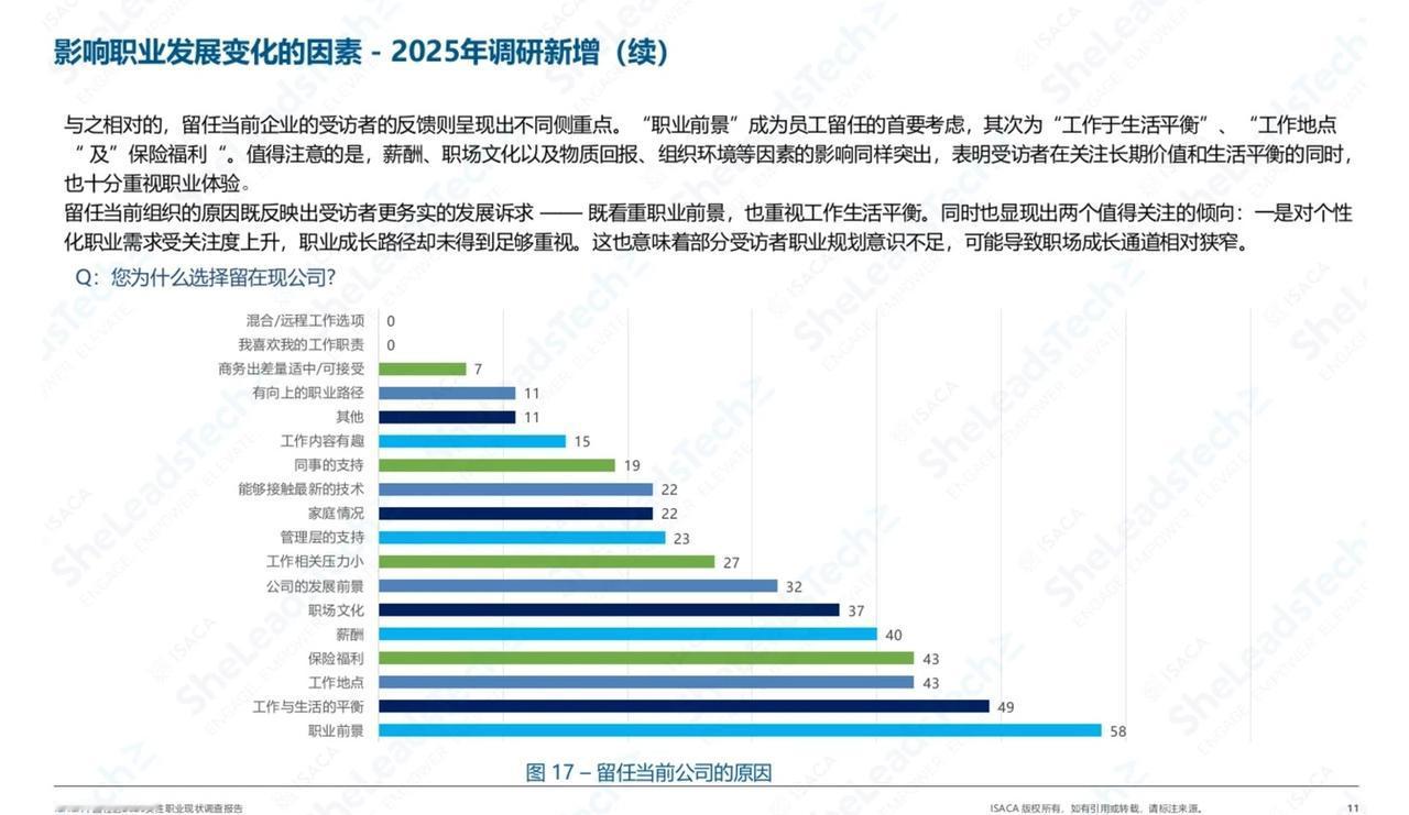 ✨深度解读2025中国社区女性职业现状调查 报告显示,当代职场女性正面临一个复杂而多元的环境。 一方面,我们的教育水平和职场参与度持续提升; 另一方面,“玻璃天花板”、婚育带来的职业中断、工作与家庭的平衡难题依然存在。 但最打动我的是,报告指出,越来越多的女性不再追求单一的成功模板,而是更倾向于自我价值的实现与生活幸福感的平衡。 🔍 核心内容分析:我们的真实处境 1️⃣ 职业发展:突破与瓶颈并存 报告数据显示,在互联网、教育、医疗等知识密集型行业,女性管理者比例稳步增长。 然而,在晋升到高层时,性别差距依然明显。许多女性在30-35岁(通常对应婚育阶段)会面临职业发展的关键抉择期。 值得注意的是,“斜杠”和灵活就业成为越来越多年轻女性的选择。 利用专业技能做自由职业、经营个人IP或开展副业,为她们提供了更多元的发展路径。 2️⃣ 工作与生活的拉扯 “如何平衡工作与家庭”依然是最高频的困扰。 报告提到,尽管社会观念在进步,但女性在育儿和家务中的投入时间仍远超男性。这种“第二班”的压力,是导致部分女性选择降速或暂时离开职场的重要原因。 3️⃣ 内心诉求:从“被认可”到“我想要” 新一代职场女性的价值观正在转变。 相比上一代人更看重的“稳定”和“他人评价”,我们这一代更关注: 工作的意义感:做的事情是否能发挥所长,是否有价值。 成长的空间:能否持续学习,提升自我。 生活的掌控感:拥有安排自己时间和精力的自由。 女性成长 职场女性 女性力量 职业规划 人生选择 反焦虑 生活平衡 独立女性 行业研究