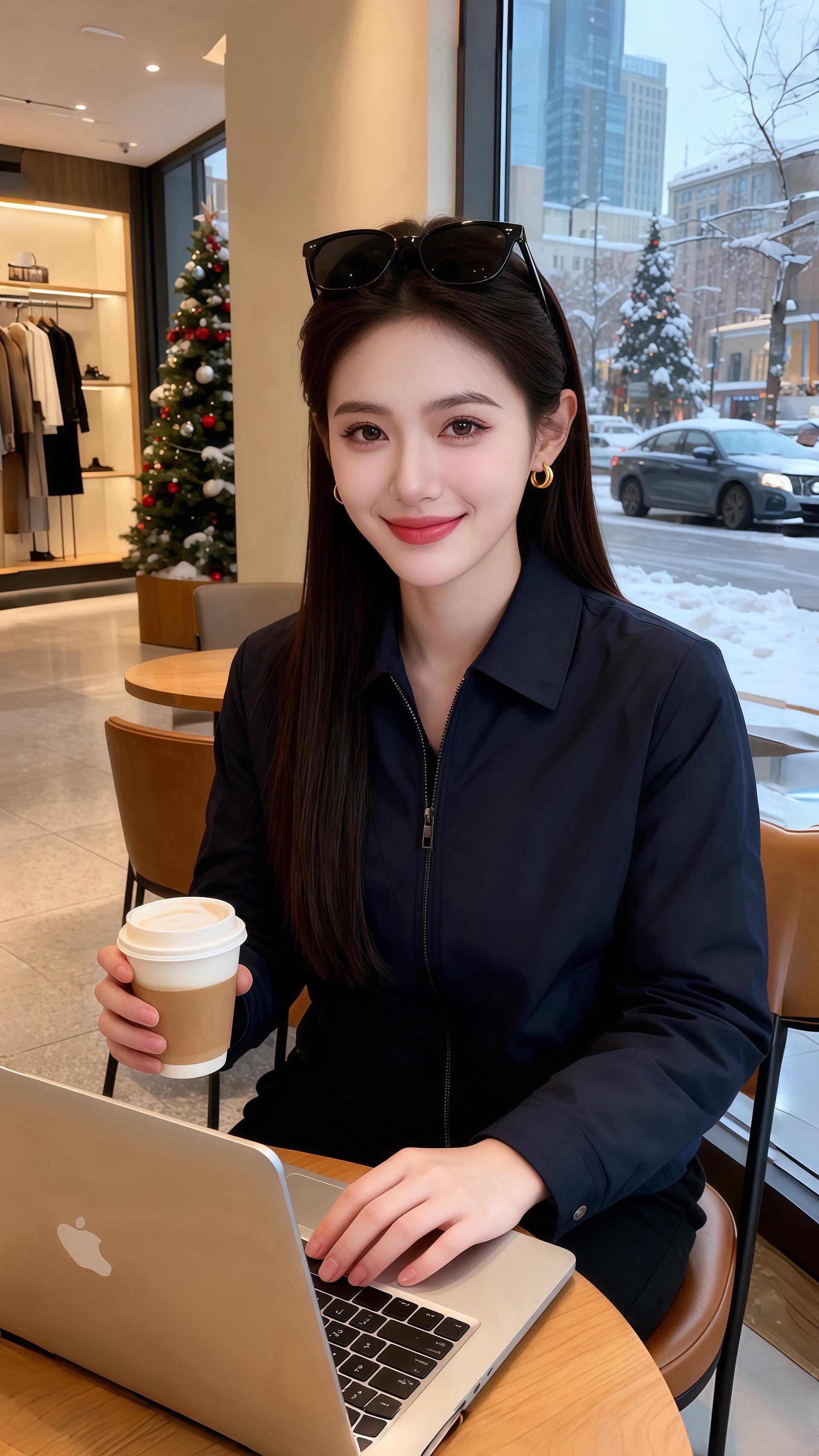 后来他说,那天她端着拿铁走过来,袖口露出一点细白的腕,耳坠是暖金的圆,和外套的冷色调撞得刚好——像雪天里忽然亮起的街灯,不晃眼,却让人移不开视线。