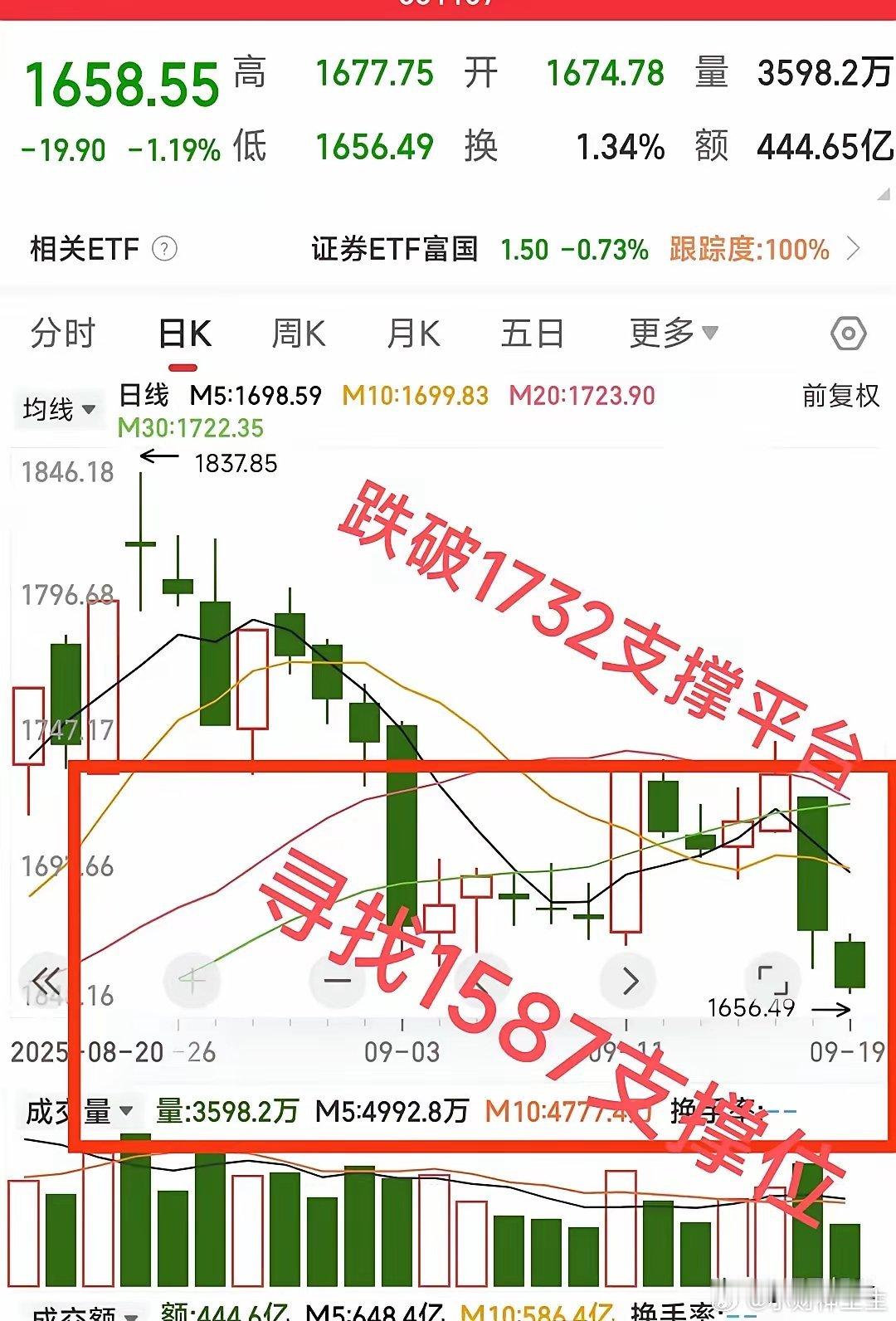 小财神以证券板块走势来解读大盘后市走势轨迹运行周三证券板块低开低走探底回升,运行在1600点上方,把岌岌可危的大盘从眩崖边拉了回来。从证券板块今天探底回升能再次确认后市继续拉升向上吗。从量能上来看显然不能,仍然运行在补缺1653下方,缺口处的压力依然存在。今天证券板块的拉升仅是连续下跌后一个技术反弹,符合强哥一直强调的证券板块震荡筑底过程,这个需要时间,何时能发生反转拉升,需要天时地利人和,现在就等待一个时间窗口。强哥以分析证券板,走势仍然坚持认为,今天证券板块拉升,把大盘从跌破3880生死线拉回来,后市继续围绕3900上下震荡,等待选择方向时间窗口。