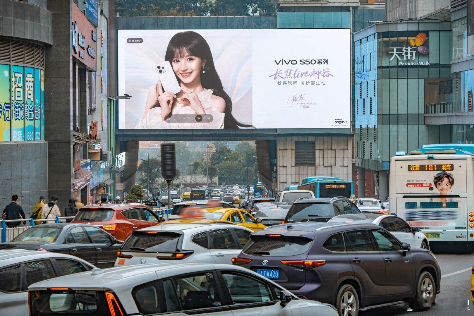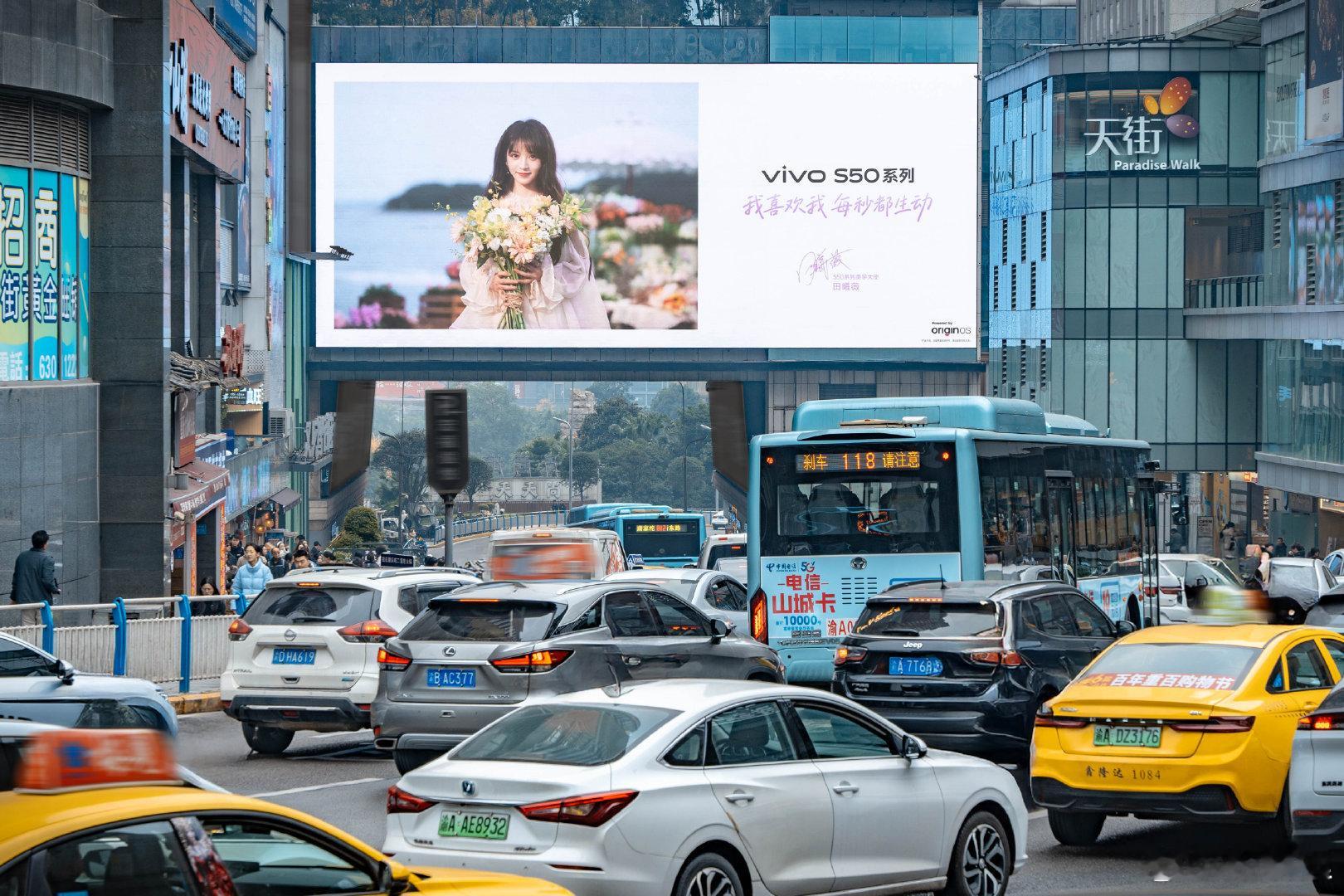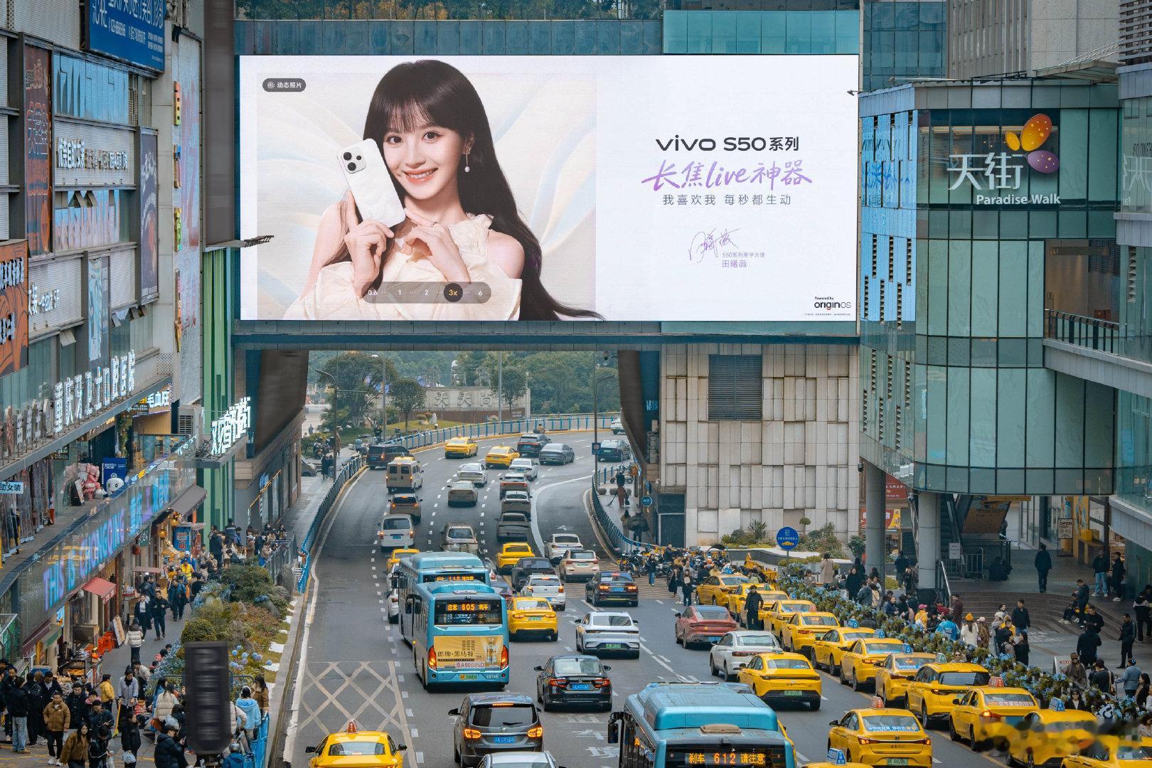 vivoS50vivoS50系列美学大使田曦薇街头大屏邂逅甜妹,小田递花好