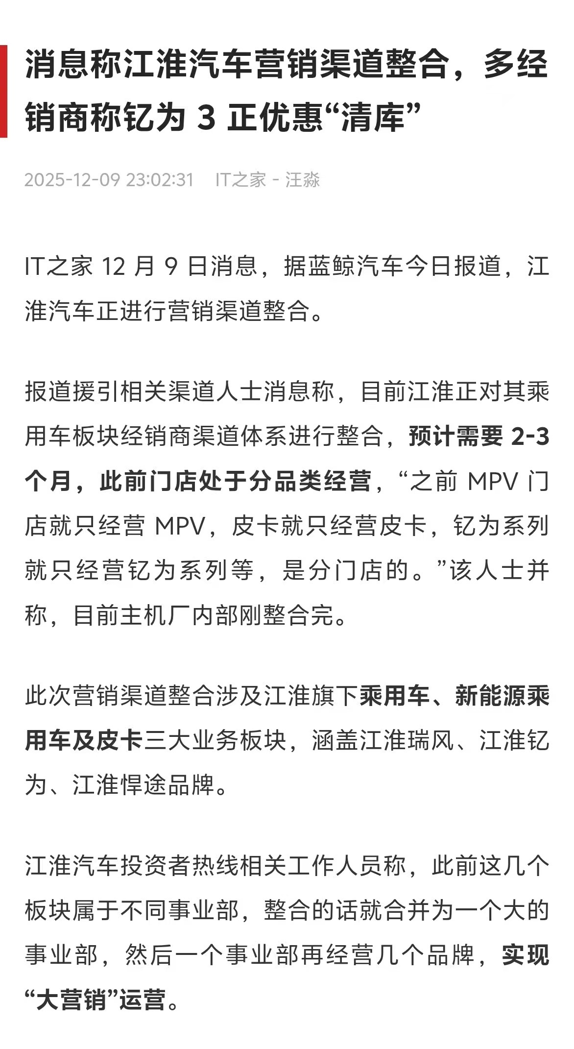 江淮汽车内部资源开始整合,营销渠道也会合并成一个大的事业部。尊界持续热销,我觉得应该是让江淮下定决心要All in了。除了尊界S800,大家对江淮还有啥印象深刻的车?我先说,瑞风S3