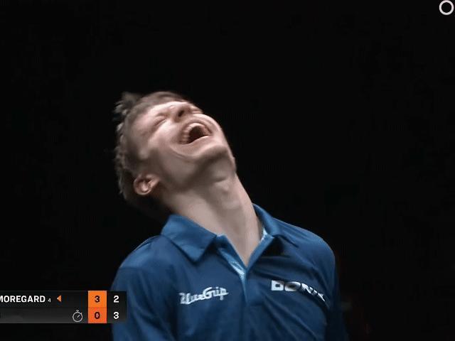 2025WTT香港总决赛莫雷高德VS林德俩人失误之后一个想咬球桌,一个仰天大笑