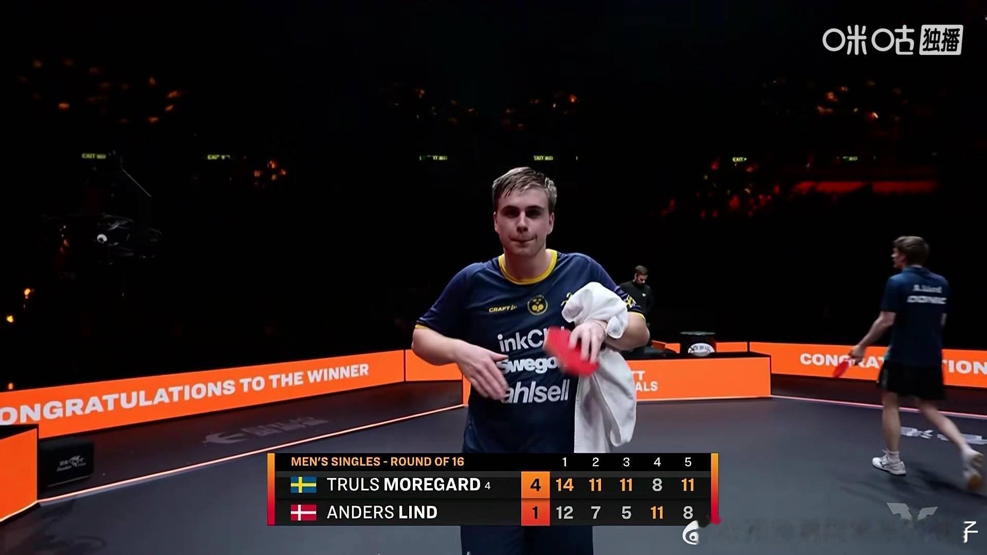 莫雷高德4比1林德(12,7,5,-8,8)晋级2025WTT香港总决赛男单八强下一轮:莫雷高德🇸🇪VS林昀儒(中国台北)