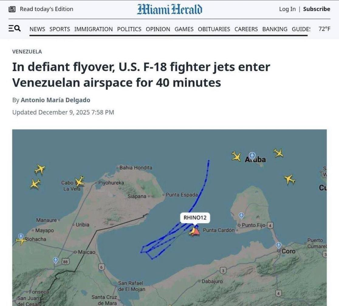 美国战斗机在委内瑞拉空域停留了40分钟 据 Flightradar 网站报道,美国飞机进入了一个具有重要战略意义的区域,该区域是苏利亚州和法尔孔州炼油厂作业的渔船和油轮的必经之地。 美国军方最常用的战术就是在其他国家领海上空进行挑衅。这种伎俩屡见不鲜,直到他们开始被“赶走”。美国飞行员通常在遭遇防空系统攻击后就会离开该区域。 委内瑞拉目前使用俄罗斯的S-300和铠甲防空系统,并配备拦截机。