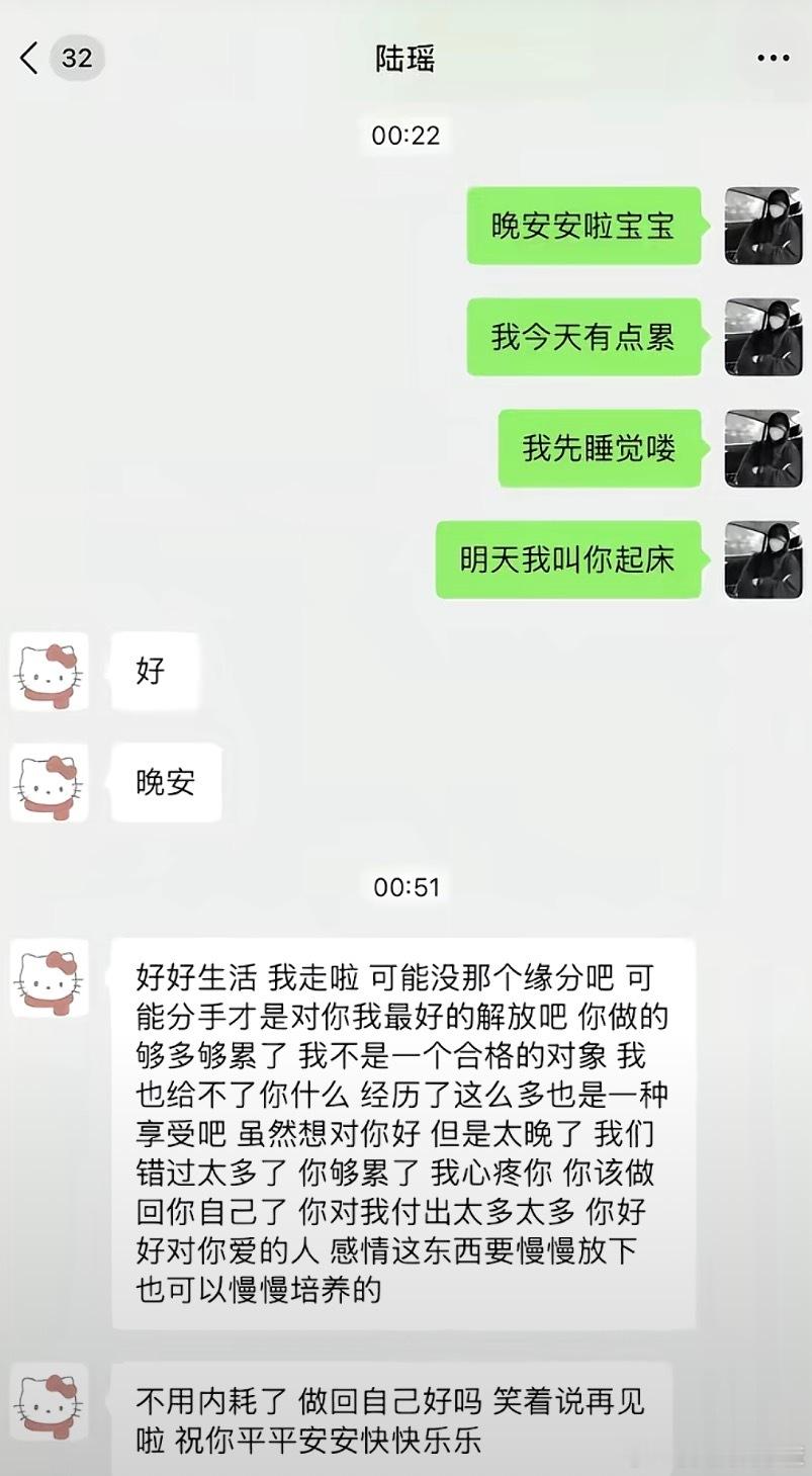 心疼他就是这么做的吗?对你付出那么多换来的结局就是你的长篇大论吗?不是一个合格的对象为什么会选择和他在一起?是因为有那么一瞬间你感觉他真的很好是吗?真的好为什么会选择离开?虽然想对他好只是虽然吗?你就这么不肯定吗?你心疼他在你看来这真的是心疼他吗?你说那的那些话想过他看到会是什么心情吗?出轨了变心了或是有新欢为什么不能直接说呢?他会理解你的。他如此爱你所以他会理解你的。他也会在某个瞬间突然想起你。 想起你们曾经在一起美好的回忆。