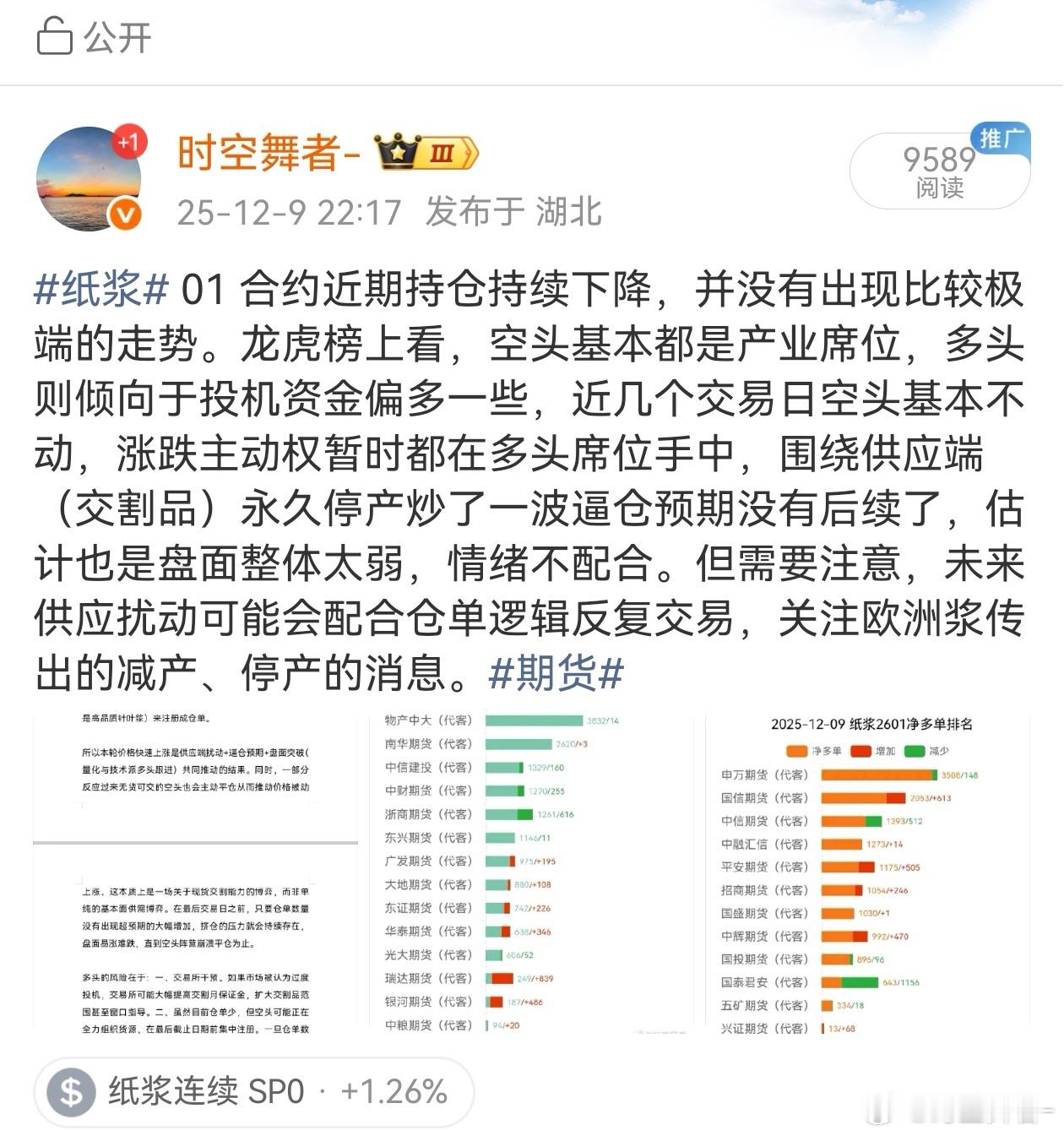 纸浆 仓单逻辑卷土重来,01 都还在增仓上涨,这一波向下的回撤绝对洗掉了一大波多头,多空双杀,真狠。期货