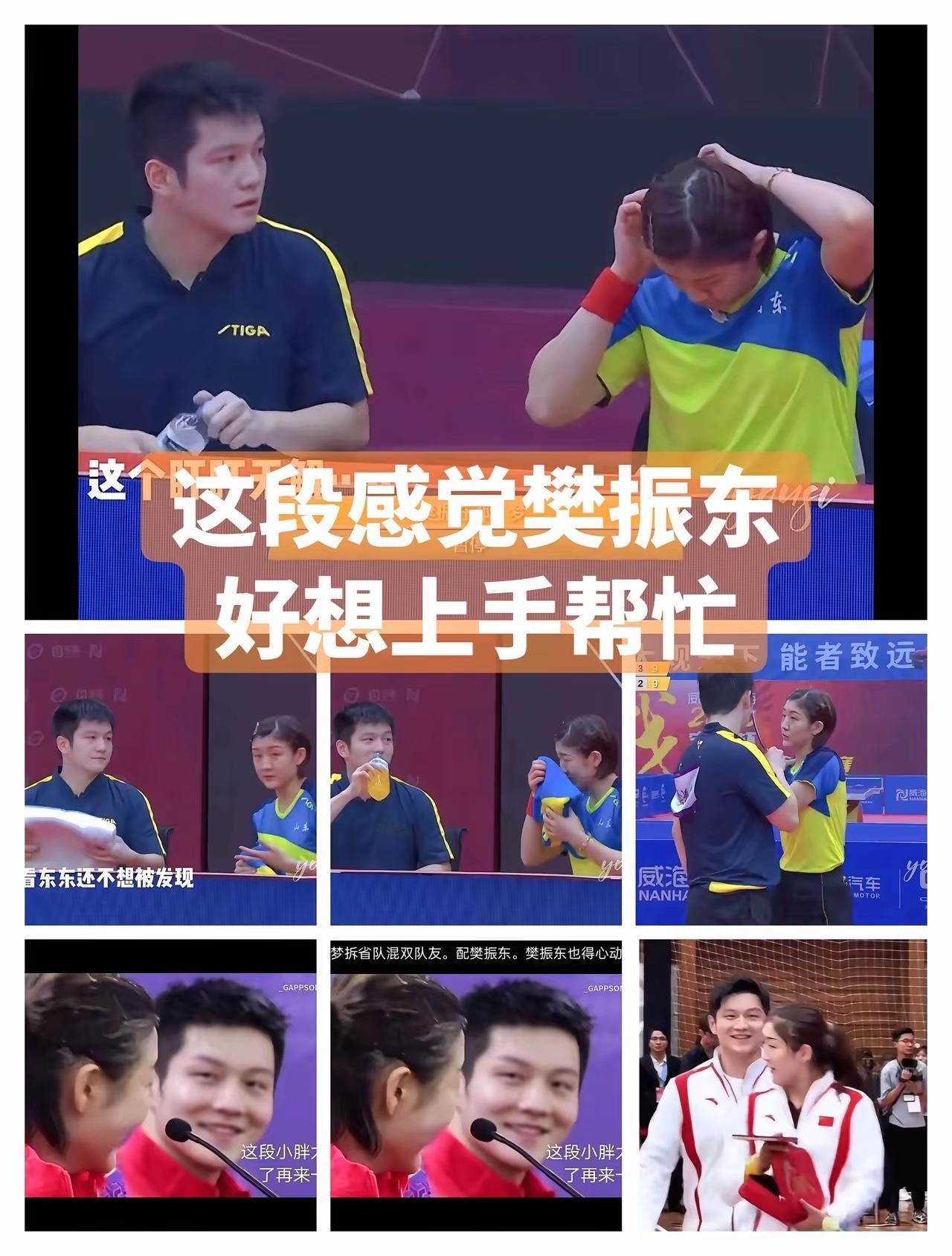 看过视频的这一段,陈梦的头发乱了在整理发卡。感觉樊振东好想上手帮忙又不敢,那小表情很暖。