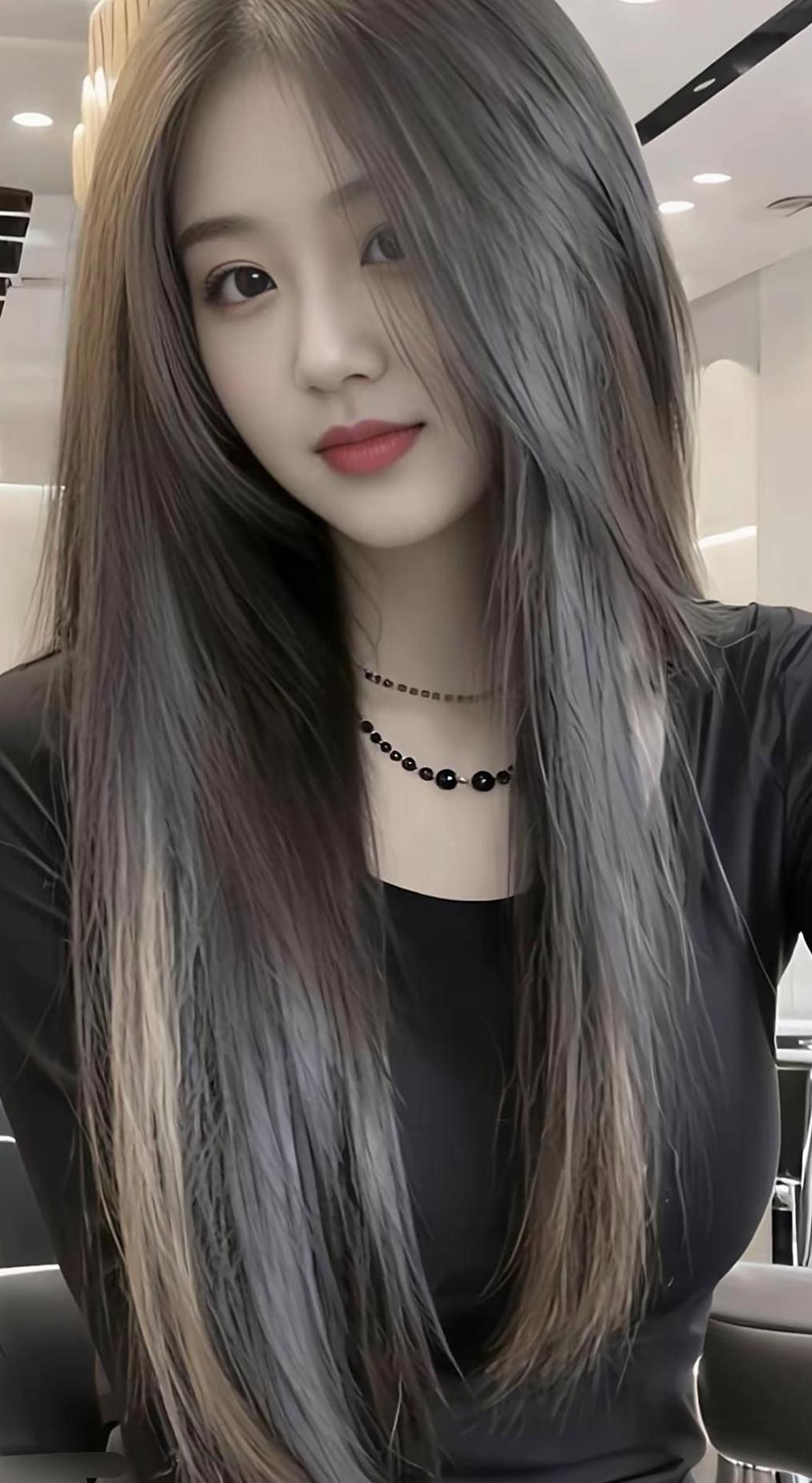 优雅黑发少女,灰色毛衣搭配,时尚又温暖。