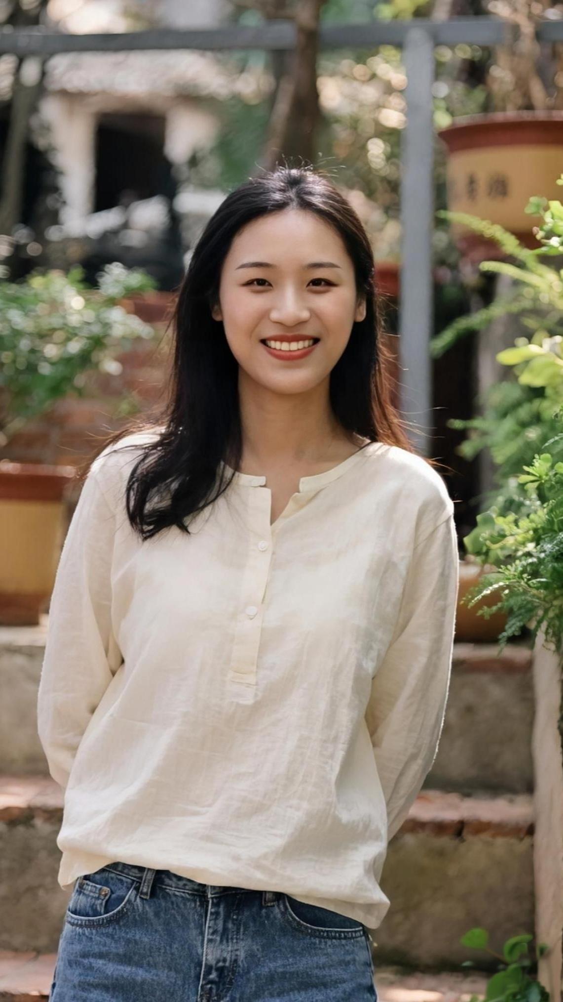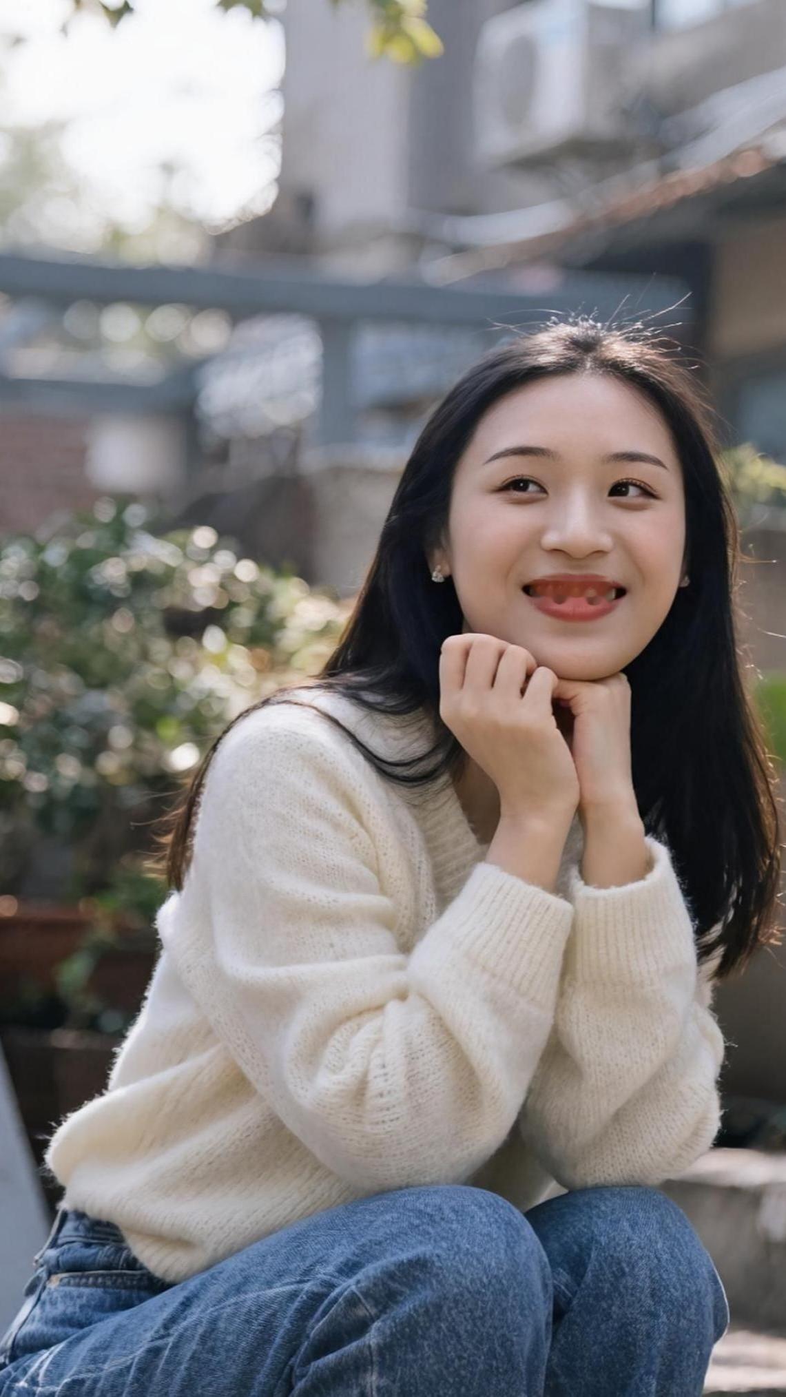 《晴光里的风》 春阳揉碎在发梢 风偷吻过软毛衣的绒角 指尖撑着半弯笑靥 眼波漫向云边未说的远方 ——那是藏在梨涡里的 关于花与星子的,轻软向往 白毛衣裹着晴光的暖 指尖轻抵腮边,让风先读心事 眼尾翘着云的形状 连裙摆都在等 下一程花开,和未拆封的远方 秋日里阳光 回忆里的风 风的记忆里