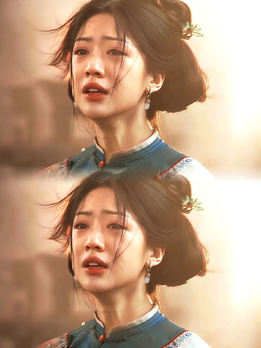 青蓝色旗袍衬得她眉眼间的悲戚更戳人大生意人 白依梅的破碎感