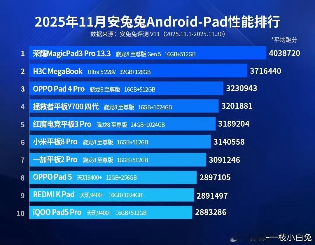 平板性能排行榜搭载第五代骁龙8至尊版移动平台的荣耀MagicPad3Pro毫无悬念夺得第一!平均跑分403万+