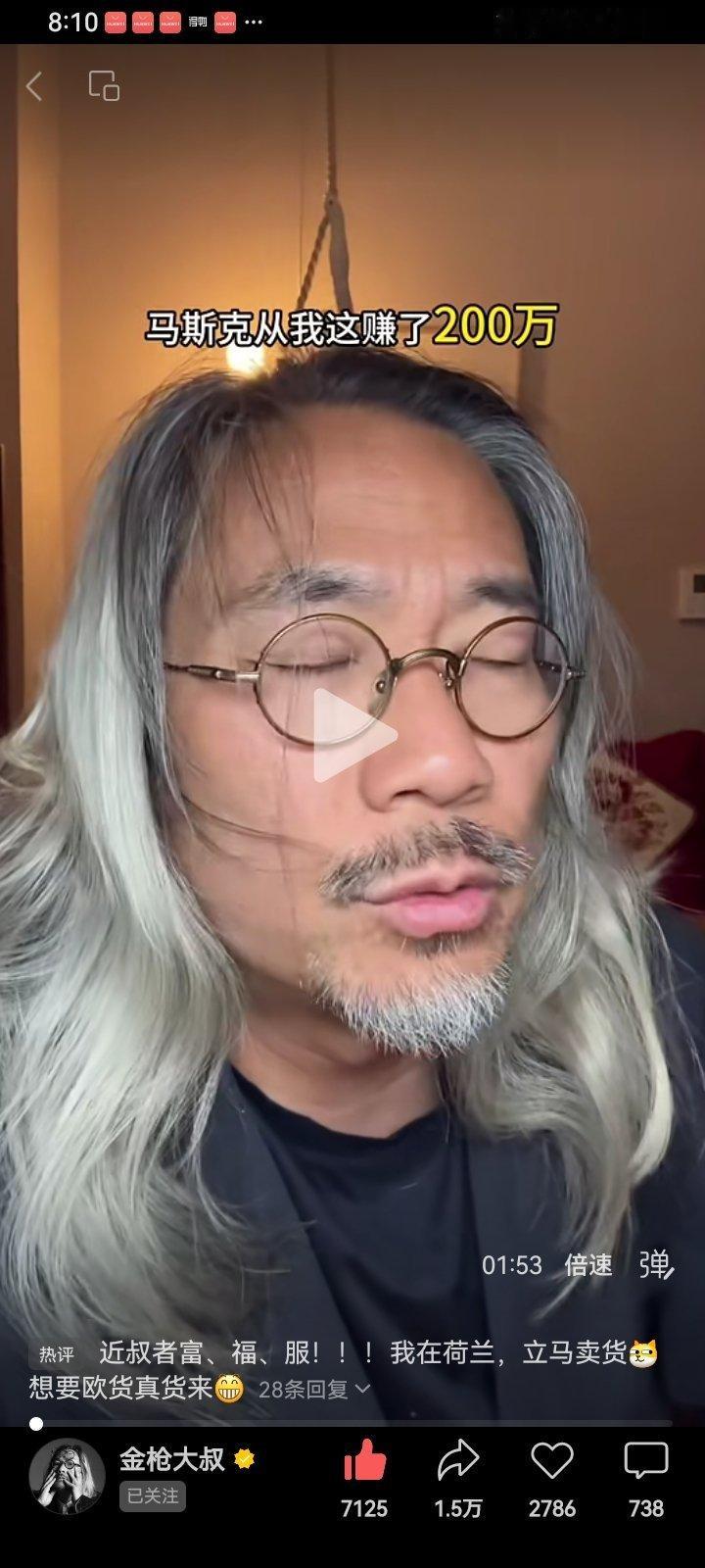 马斯克从我这赚了1个亿,雷军从我这赚了170万。金枪老师每次视频模板:噱头/热点+名人擦边+内心旁边+商业逻辑+观点输出最主要是蹭热点和名人