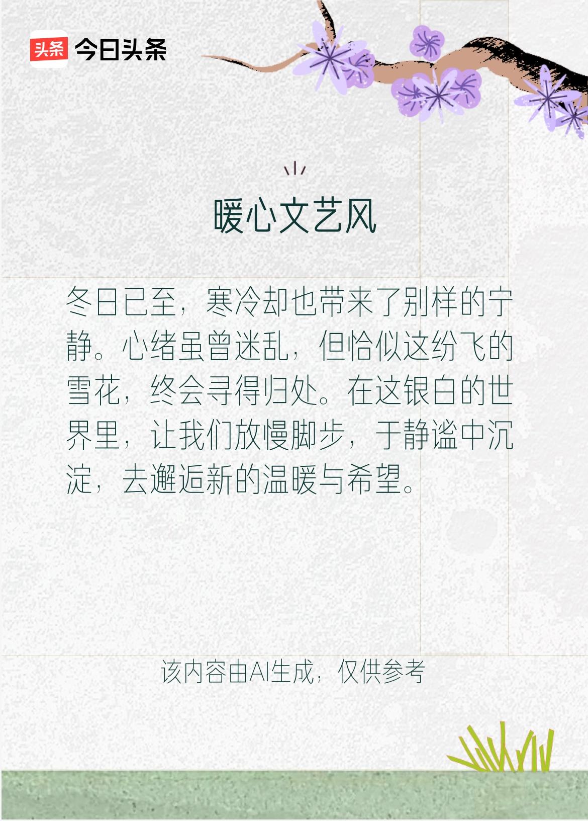 在这沉寂的世界里,让我们放慢脚步,于静谧中沉淀,去邂逅人生的温暖与希望。 戳这里👉和我一起作诗词歌赋,赢万元大礼~
