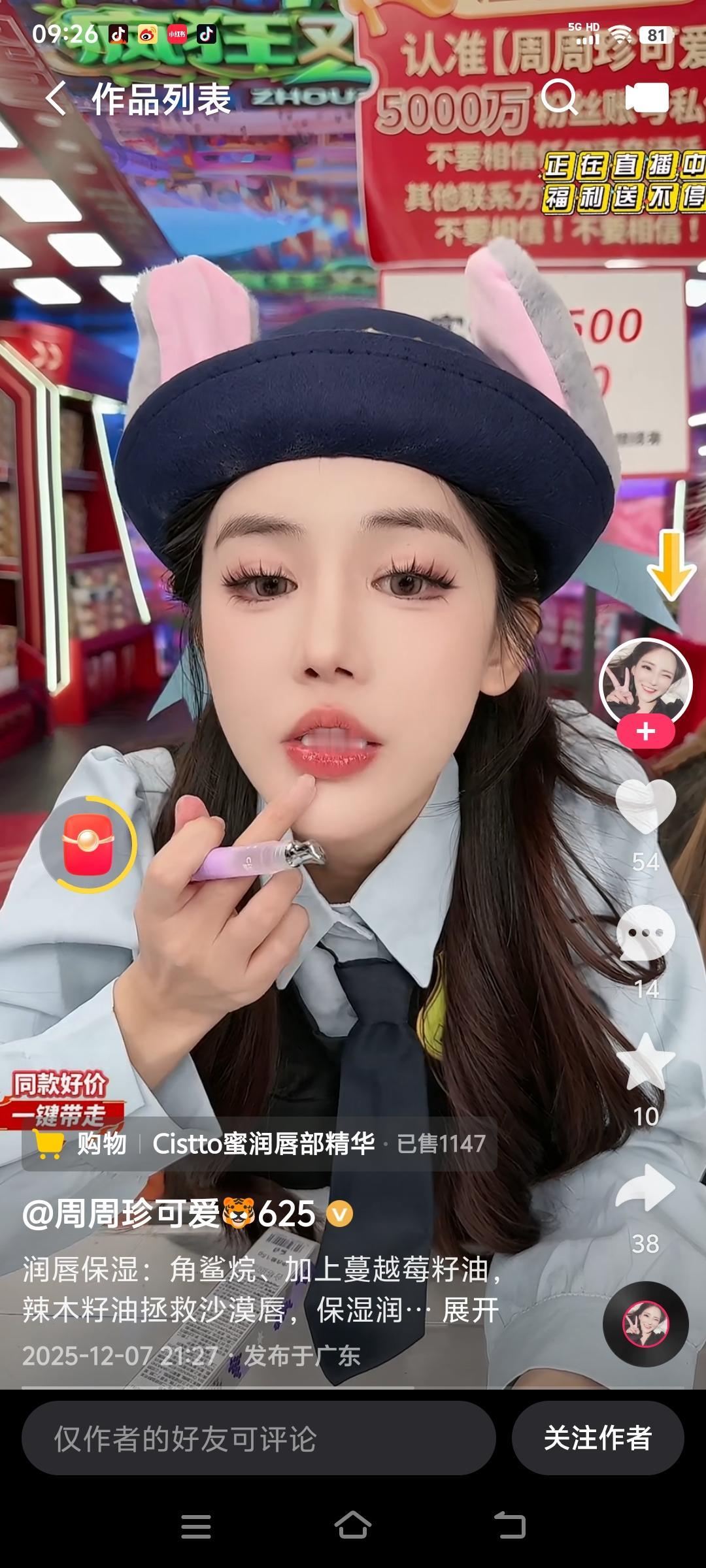 5000万粉丝女网红偷税漏税超1600万,罚款800多万,仍然在平台直播卖货? 刚才刷到拥有5000万粉的大网红“周周珍可爱625”,名下公司逃税1659万、被罚829万,结果现在还在平台上高频直播,甚至在筹备双十二大促。不禁让人感慨做网红是真挣钱啊! 她名下实控的广东嘉星传媒,被税务查出账上少列收入逃税,9月就公布了处罚结果。但这姐们儿跟没事儿人似的,账号粉丝还在涨,店铺销量超过99%同行,近7天卖出了超10万件货。 咱就说一句公道话,纳税是每个公民的义务。普通老百姓挣点工资,个税都是自动扣的,一分都少不了。她倒好,赚得盆满钵满,还想着偷逃税款,完了居然还能在平台正常直播带货继续割韭菜。 现在网友都炸了:税务都罚了,平台为啥不处理?是没看见还是装没看见?这可是逃税上千万啊,普通老百姓漏点税都得补,大网红就能接着赚? 说实话,咱不是仇富,但纳税是每个公民的义务。一边赚着粉丝的钱,一边偷逃国家的税,完了还能照常直播带货,这事儿搁谁心里能平衡?对于那些遵纪守法的人是多么的不公平。 根据12月8日,国家税务总局政策法规司司长在新闻发布会上的介绍,今年1月至11月,全国税务部门共查处包括明星网红在内的“双高”人员1818名,查补税款15.23亿元。可见国家对于偷税漏税行为的打击还是比较大的。所以不要存侥幸心理,一定要做一名遵纪守法的公民。大v逃税 主播公司偷税 网络偷税 网红涉税处罚 主播个税补税 偷税网红 偷税漏税 网红
