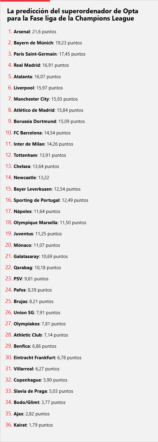 Opta预测巴萨最终欧冠排名第10,平均积分为 14.54 分,这意味着巴萨有可能要与多特蒙德、国际米兰、托特纳姆热刺或者切尔西等顶级球队进行附加赛。巴萨2比1法兰克福欧冠联赛巴萨