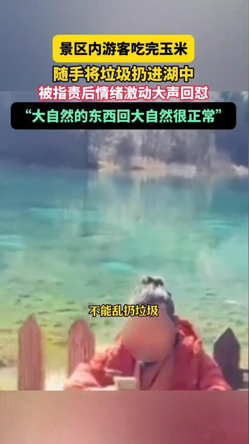 “无理也要辩三分!”12月10日,四川阿坝,一男子在景区游玩时,感觉有些饿了,就从包里面掏出一根玉米吃,而吃完后随手就将垃圾丢进湖中,游客见状纷纷指责男子没有素质,男子却回怼:大自然的东西回归大自然很正常! 在景区、图书馆等公共场合,就应该遵守公共场合的秩序,不乱扔垃圾、不大声喧哗,这是最基本的素质问题,可有些人却不以为意,甚至还为自己的行为找借口。 九寨沟拥有独特的景观,历来吸引了大量游客前往,这天,男子也来到景区游玩,走了一段路后,感觉有些饿,就取出包里面的玉米啃了起来。 没多时,整根玉米就被吃光了,而令所有人都没想到的是,男子直接就把玉米棒子丢进了湖中,这引起了周围游客的强烈不满。 在周围巡逻的工作人员也发现了这一现象,立即赶过来教育男子,可是男子却并没有觉得有任何不妥,玉米是大自然的产物,让它回归大自然有什么错?如果玉米也算污染物,为什么这种东西还能卖给人吃? 总之男子在地上各种推卸责任,这事自己一点错都没有,说什么也不肯承认错误! 网友看后表示,如果人人都像他这样随手乱丢垃圾,那么再美好的景观也终将不复存在,保护环境人人有责,更何况这还是在景区里,明文规定不能乱扔垃圾! 信息来源:《男子九寨沟将玉米棒扔水里被劝阻,反怼:如果它有污染为什么给我吃“大自然的东西回大自然很正常”》新浪新闻