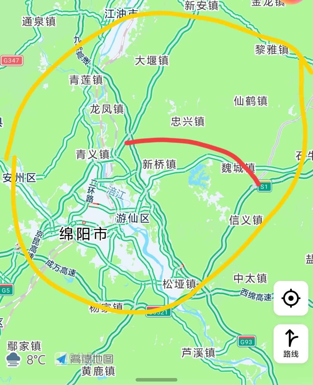 绵阳的环城路可以再放大点,除了现有的环线网络外,还可以增加两条环线路,第一条就是把京昆高速复线的魏城镇直连京昆高速石马镇,第二条就是从梓潼到江油到安州到涪城区,串联起高速环线,还可以接入绵阳新机场进行联运,毕竟绵阳的体量不断增长的同时相应的交通建设也应该跟上,做大做强川内第二大城市和川北第一重镇。
