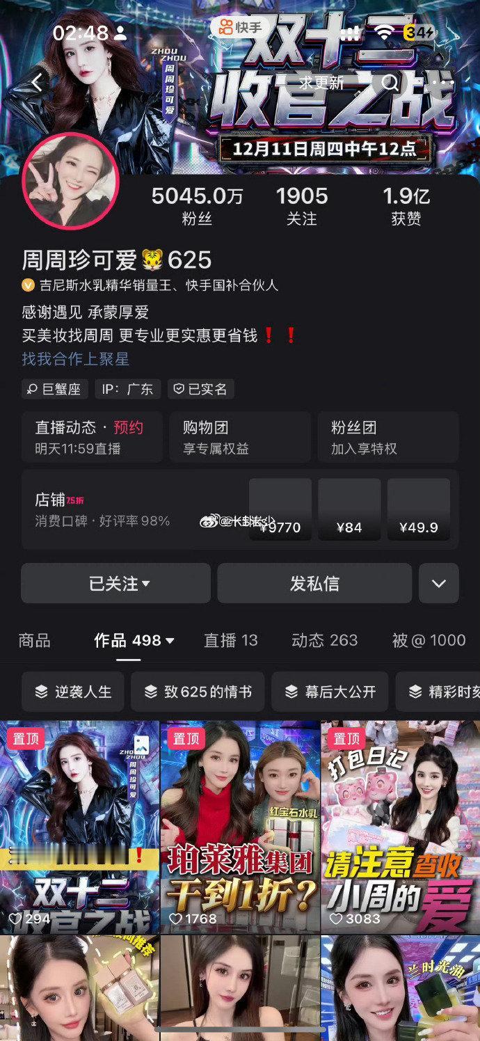 但是目前,这名主播仍在直播,并为“双十二”促销活动做准备。根据网友提供的线索,“周周珍可爱625”名下的广东嘉星投资集团有限公司全资持股的广东嘉星文化传媒有限公司,因在账簿上不列或少列收入,被国家税务总局佛山市税务局第一稽查局认定存在违法行为,该公司少缴税款达16591280.31元,罚款金额为8295640.21元。 潮新闻记者查询发现,“周周珍可爱625”实名信息“周珍”,在该平台拥有5044.7万粉丝,账号认证为吉尼斯水乳精华销量王、平台国补合伙人,视频内容以美妆产品为主,影响力较大,还是湖南娄底市助农公益大使。其店铺位列平台面部护肤店铺榜第5名,近期销量超过99%的同行,近7天热卖商品超10万件。 店铺公示的营业执照显示主体为广东嘉星投资集团有限公司。天眼查信息显示,广东嘉星文化传媒有限公司成立于2019年11月,周珍曾持有91.6667%股份,并于2023年2月28日退出,目前由广东嘉星投资集团有限公司100%控股。周珍担任广东嘉星投资集团有限公司董事,持股99%,为公司实际控制人。 与此同时,潮新闻记者在国家税务总局广东省税务局的官网上,查到广东嘉星文化传媒有限公司的行政处罚信息。 经核对,与网友所提供的信息基本一致,广东嘉星文化传媒有限公司逃避缴纳税款,存在账簿上不列或少列收入的违法事实。 12月8日,国家税务总局政策法规司司长在新闻发布会上介绍,今年1月至11月,全国税务部门共查处包括明星网红在内的“双高”人员1818名,查补税款15.23亿元。 不少网友质疑,税务部门对其名下公司处罚决定今年9月就已公布,那为何周珍目前仍在高频次直播?平台是否知晓该涉税处罚信息?为何未对其采取相应处理措施? 截至发稿,该短视频平台工作人员对此暂无回应。随后,潮新闻记者就此事咨询了河南泽槿律师事务所主任付建。 付建认为,根据《中华人民共和国税收征收管理法》第六十三条,在账簿上不列、少列收入本就是法定偷税情形,该行为须具备主观故意性,企业作为专业经营主体,对收入记账报税有基本认知,刻意不列或少列收入明显是为规避纳税义务,绝非无意的逃税。 “税法明确规定,偷税行为的罚款区间为不缴或少缴税款的50%以上五倍以下。50%是偷税罚款的最低标准,此次按最低标准处罚,大概率是基于企业存在配合稽查、未造成更严重后果等情节,属于合法的执法裁量。”付建说。 除此之外,付建还指出,《网络主播行为规范》明确要求,对违法失德、造成恶劣社会影响的网络主播,可封禁账号并纳入黑名单。她如今继续直播,不仅违背公序良俗,还涉嫌违反上述规范,平台若未及时处置,也需承担相应的监管责任。5千万粉丝网红名下公司逃税逾千万 (来源:潮新闻 )