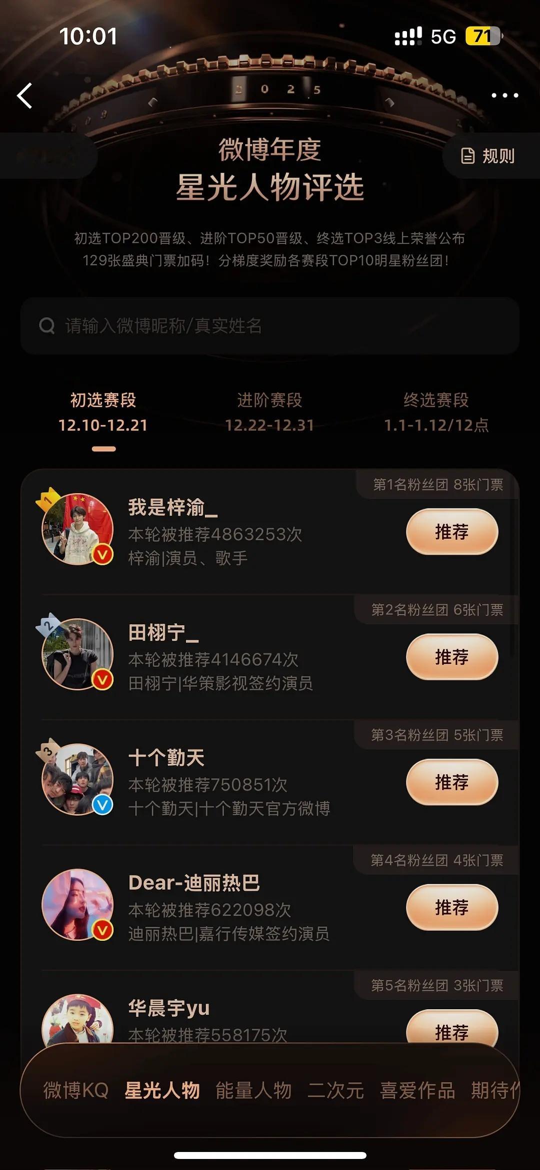 6.0粉丝真的拼了命的投微博之夜,就想把梓渝和田栩宁送进内娱,整个微博之夜投票除