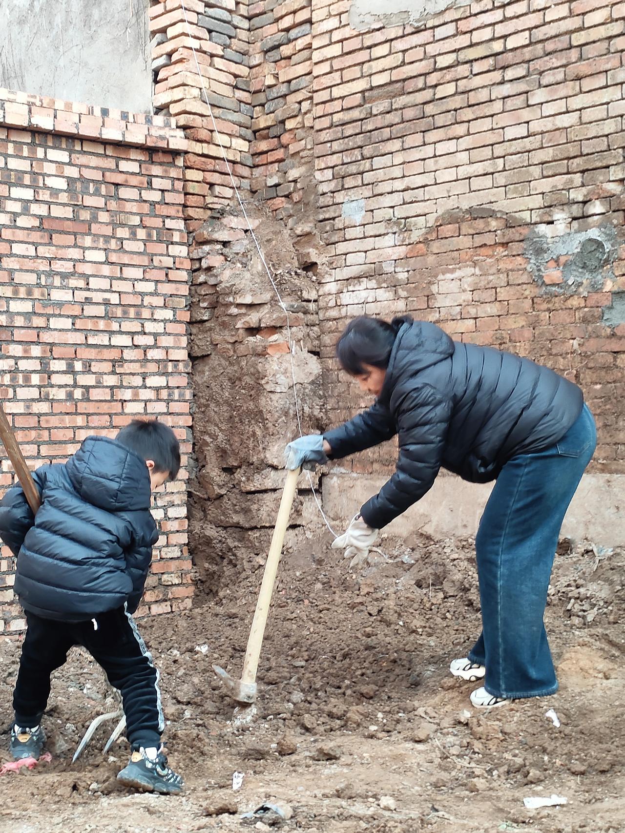 晒图笔记大赛旧墙根下的土屑沾了冬风的凉,小身影攥着耙子,跟着大人的锄头轻晃。砖缝漏过的光,把一老一小的认真,揉进了这捧刚翻过的泥里。