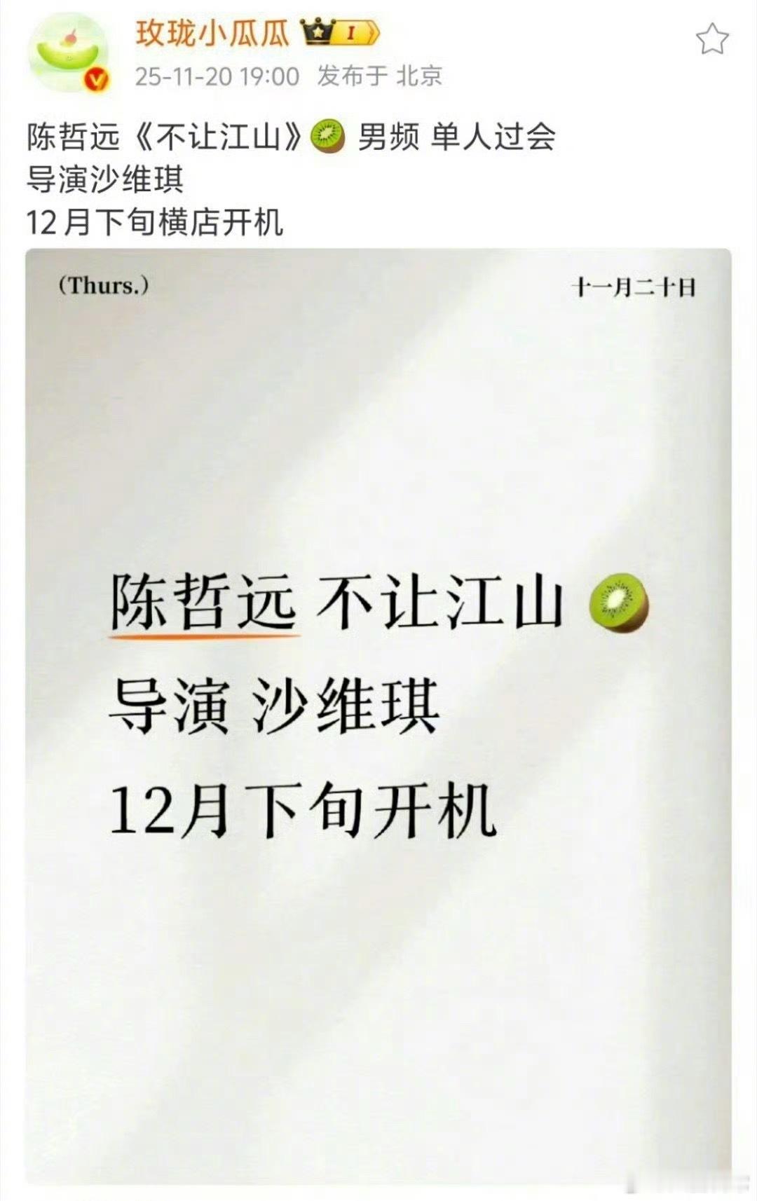 🍉《不让江山》从陈哲远换成杨洋,导演也换了