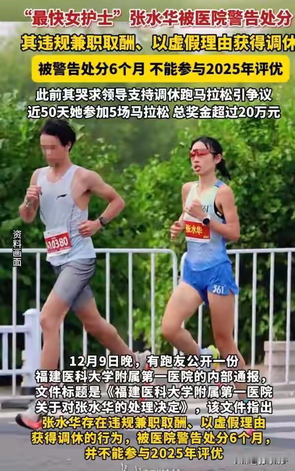 张水华若拿出比赛奖金宴请同事结果会不会大家欢喜!最快护士张水华被院方处罚,她无缘12月14日的本土比赛福州马拉松了。 以前院方为她参加福州马拉松牵线,今年咋就黄了? 网友:张水华若拿出一部分奖金给替班的同事也许皆大欢喜!
