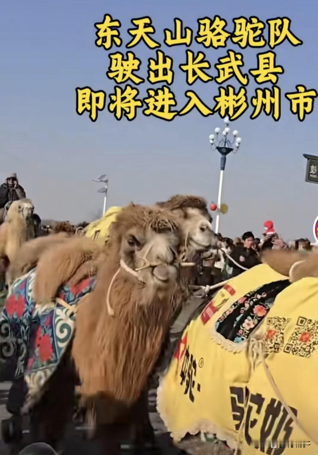12月10日东天山骆驼队重走丝绸之路经过陕西长武县,受到了当地人民群众夹道欢迎。11日,骆驼队将到达彬州网红地柿子园,柿子园的游客有眼福了。 东莞打工的我有些羡慕!