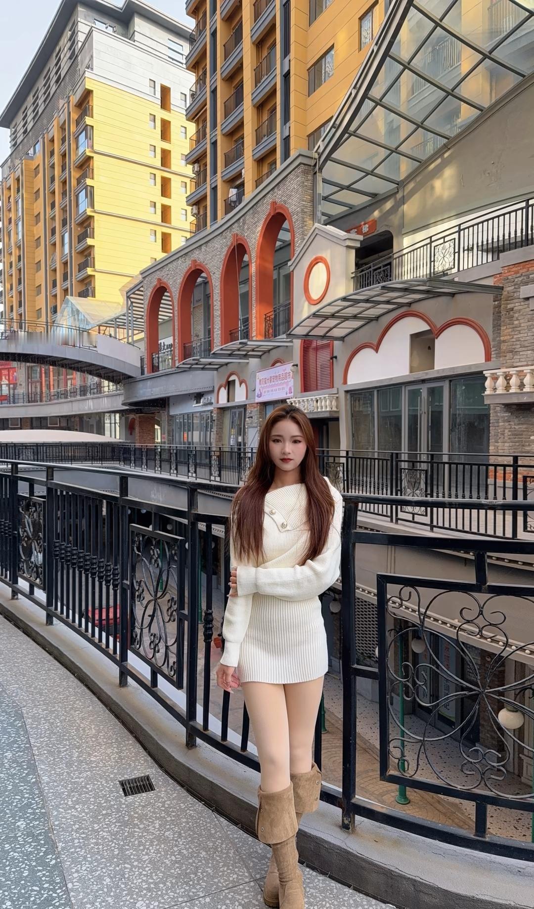 冬日穿搭指南:白色毛衣+棕色靴子,温暖又时尚!