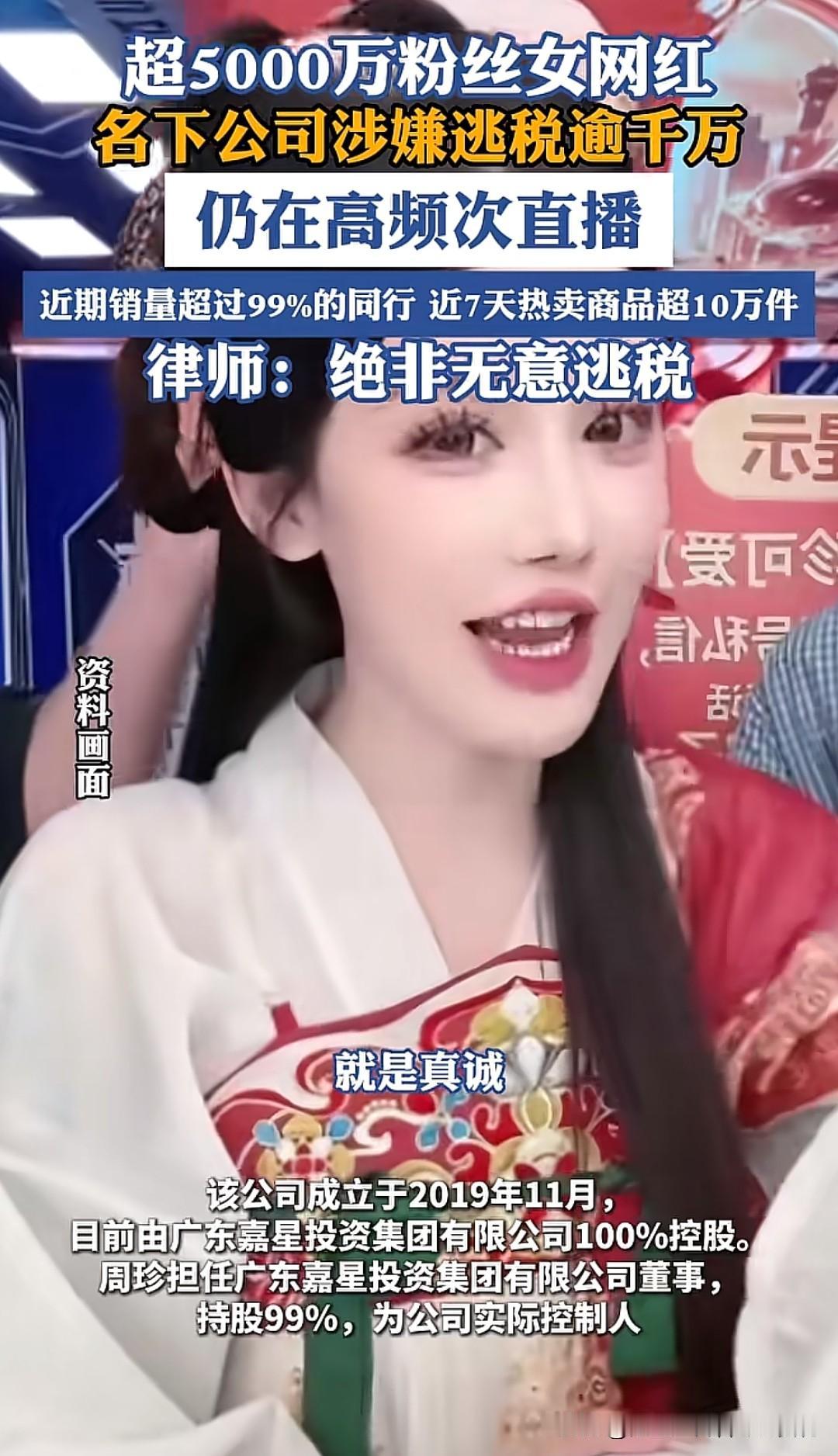 最近有网友举报,超5000万粉丝的女网红名下公司涉嫌逃税逾千万!尽管已被国家税务总局佛山市税务局查处,涉及金额逾1600万元,但她目前仍在高频次直播,还在为“双十二”促销活动做准备,这让很多网友百思不解,都劣迹网红了,怎么一点事都没有,甚至比之前更活跃了,这不合理呀! 要知道,此前有许多因偷逃税被封杀的网红,如薇娅、雪梨、驴嫂平荣、秀才等等,为什么有的却没事呢?很多时候,还是平台睁一只眼闭一只眼,默认了这些不良主播公开售卖假货,家人们如果不识货,会永远被她们蒙在鼓里,因此很多人购买的奢侈品,别看质量还行,很有可能是高仿,价格不贵。