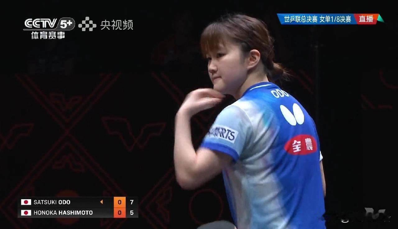 大藤沙月也挺会打桥本的呢。 刚刚看大藤沙月和桥本帆乃香的比赛,第一局看大藤沙月打的一点也不费劲儿,不管得没得到,她抬手就是抡。在第一局比赛中,大藤沙月是11-8先赢一局。大藤沙月主要是在近台快攻,确实很有威胁的,看大藤沙月的眼神就很有信心。 刚刚在第二局比赛中,有一分俩人打了至少有30板,大藤沙月一开始发挥的很稳定,桥本失误也多,大藤沙月比分8:4领先,后面桥本是连追了3分,把比分追到了7:8,这时大藤沙月果断叫了暂停,她想把这一局也拿下来,暂停回来大藤沙月连拿3分,以10-7拿到第二局的局点,刚刚那一分是打了44板,打的很有耐心,最终大藤沙月是11-7再赢一局,目前大比分是2-0领先。 局间看到大藤沙月都没有坐着休息,解说说今天桥本帆乃香在关键分上失误比较多。大藤沙月确实发挥也好,而且大藤站位靠近台,桥本被大藤沙月进攻的一直退到远台。希望她俩都比赛打的快一些,那样我们的那两对混双可以早点打比赛,蒯曼和莎莎晚上还有女单的比赛。