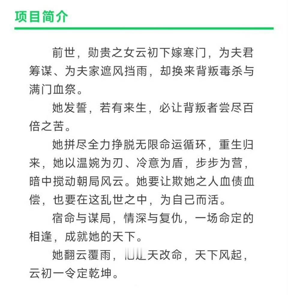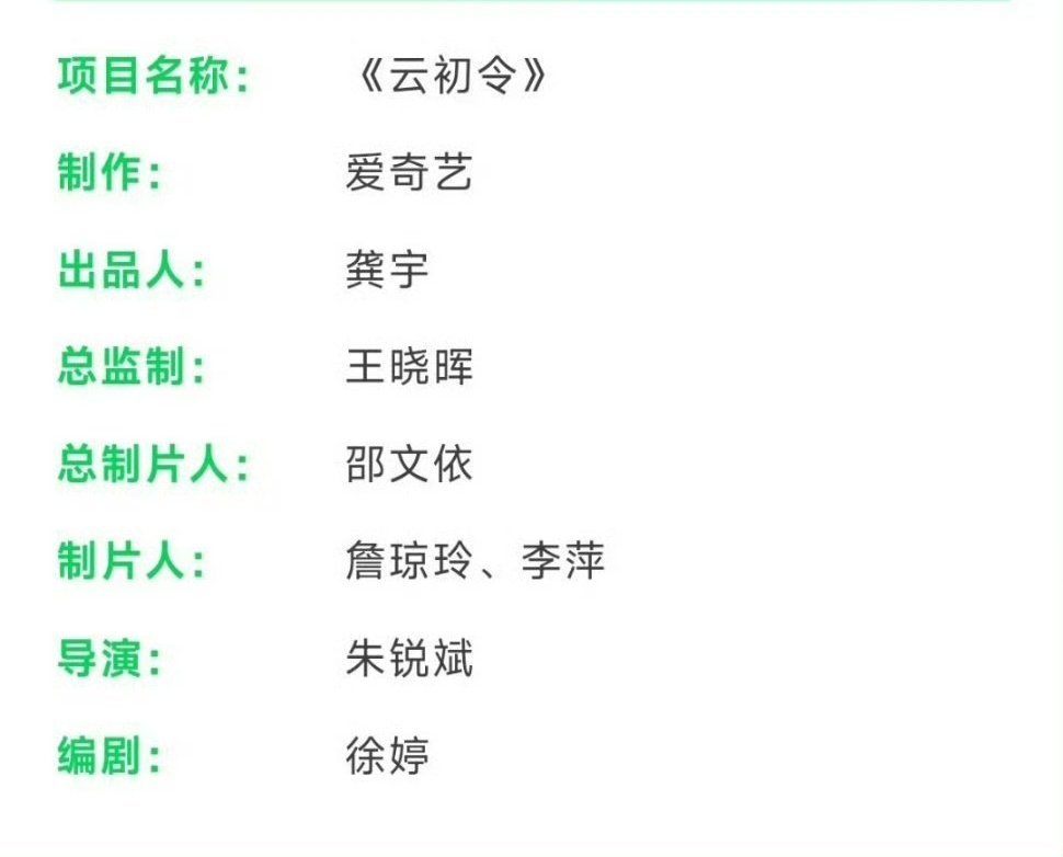 虞书欣、张云龙《云初令》12月底开机,导演朱锐斌,编剧徐婷,梳化侍慧