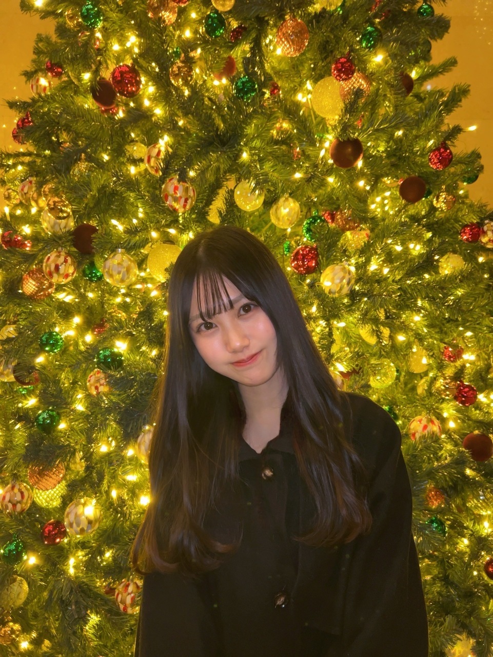 鶴崎仁香「先日、桜と一緒にお出かけして、キラキラをたくさん観てきたんです~~。ツリーもとっても可愛かったの🎄。冬の外ってすごく寒いのになぜか歩きたくなるのは、やっぱり街中の至る所に綺麗な景色が広がっているからだと思うんだ~。まだまだ色々なツリーを観に行きたいし、他のイルミネーションにも行ってみたいな🪄。街がキラキラしていて、あたたかい食べ物も最高に美味しくて、冬って最高だ、、!さむいけど!❄️。」