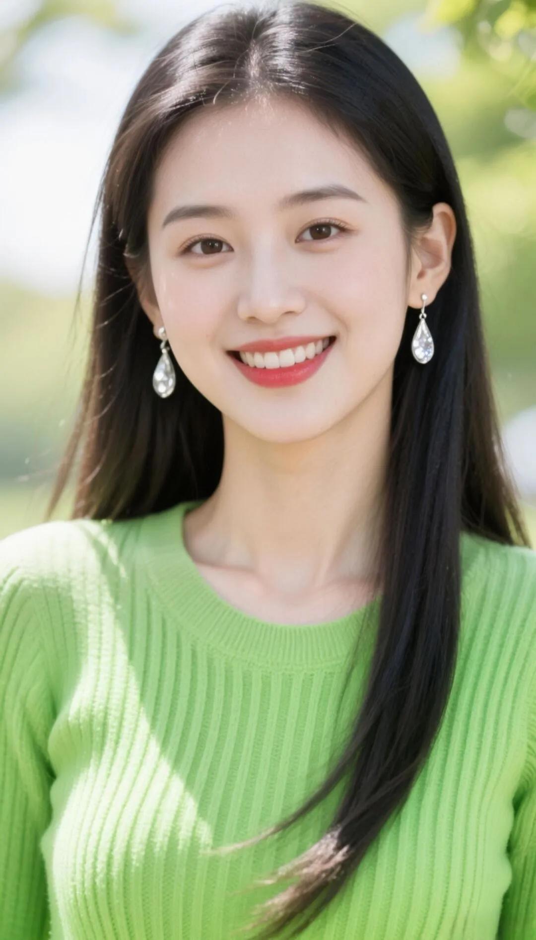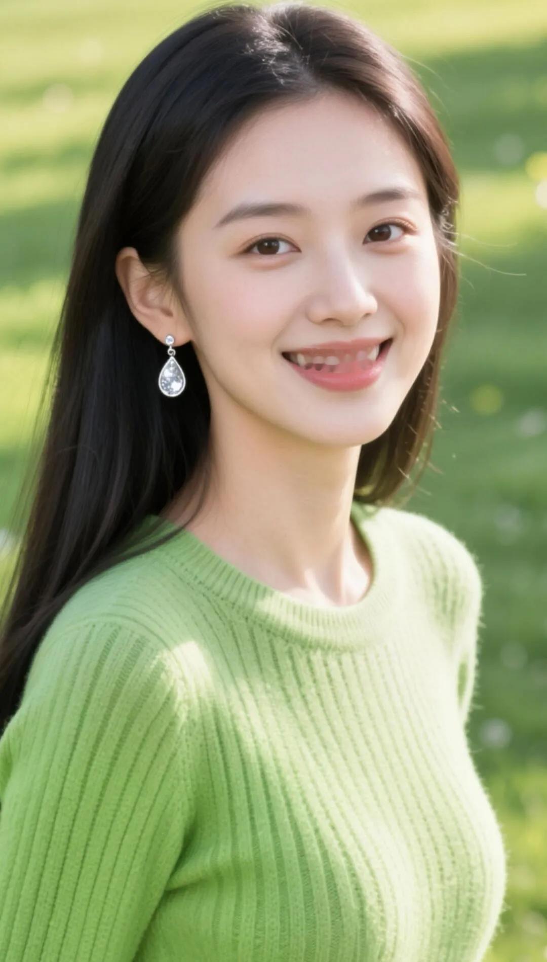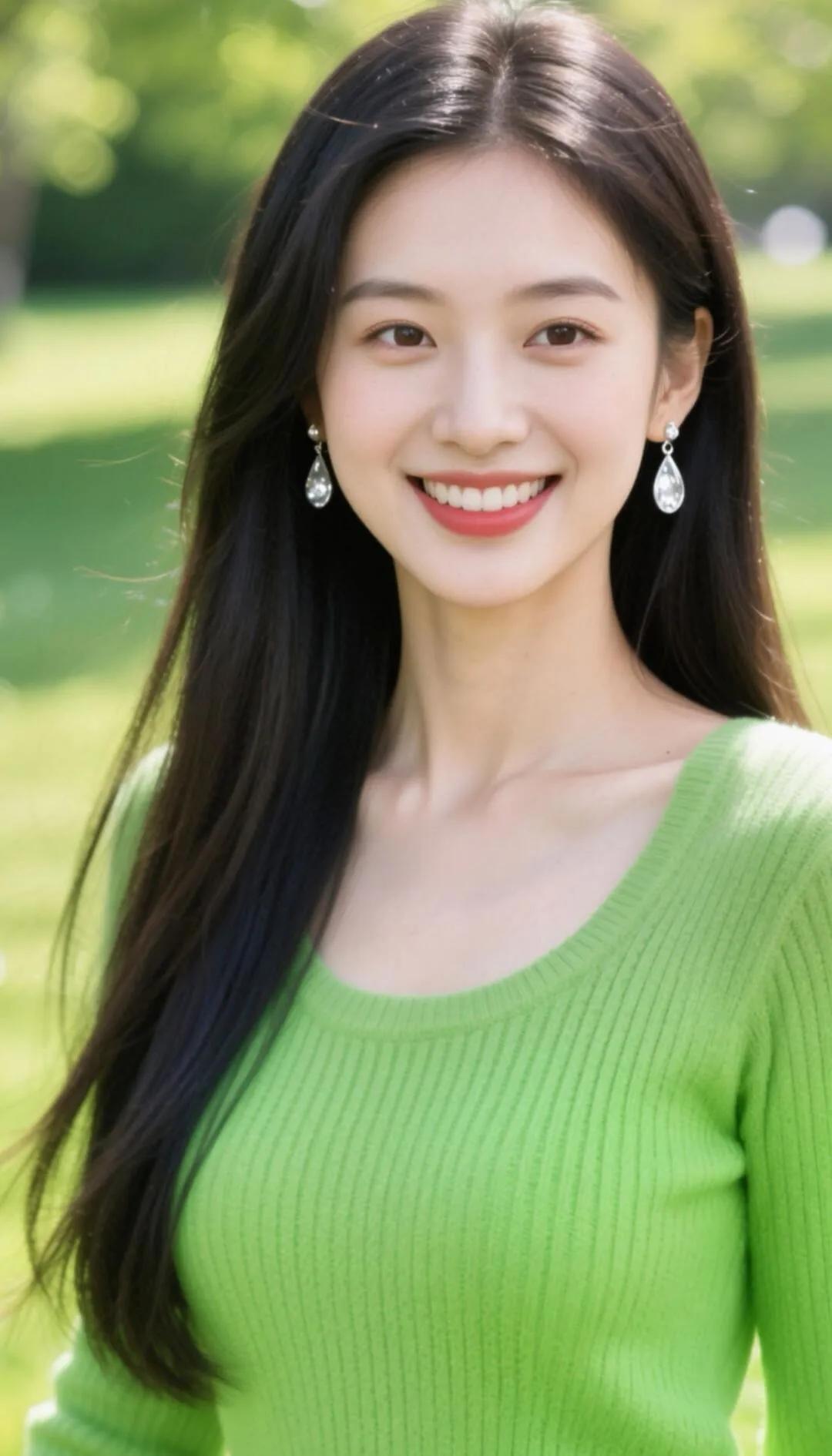 阳光明媚的午后,绿意盎然的公园里,一位微笑的姑娘,清新自然,如春风拂面。