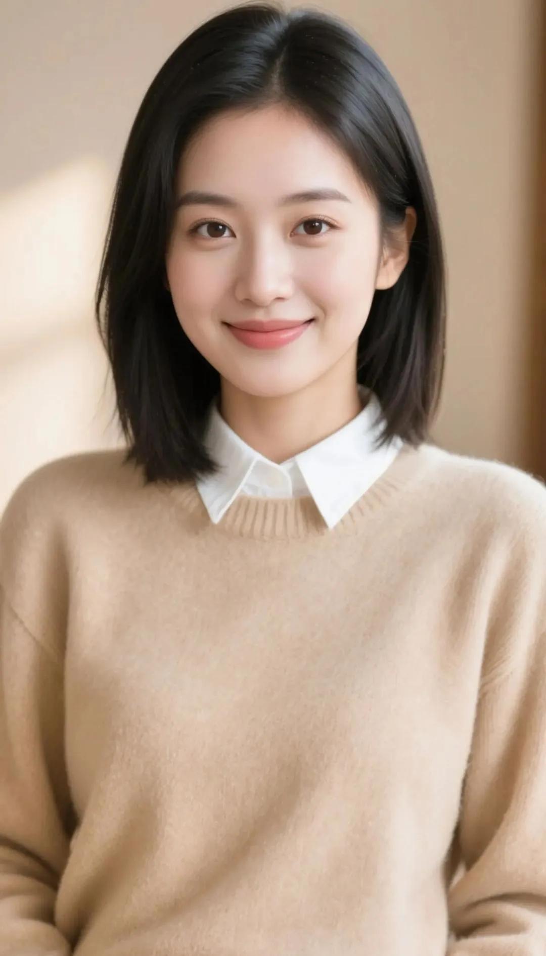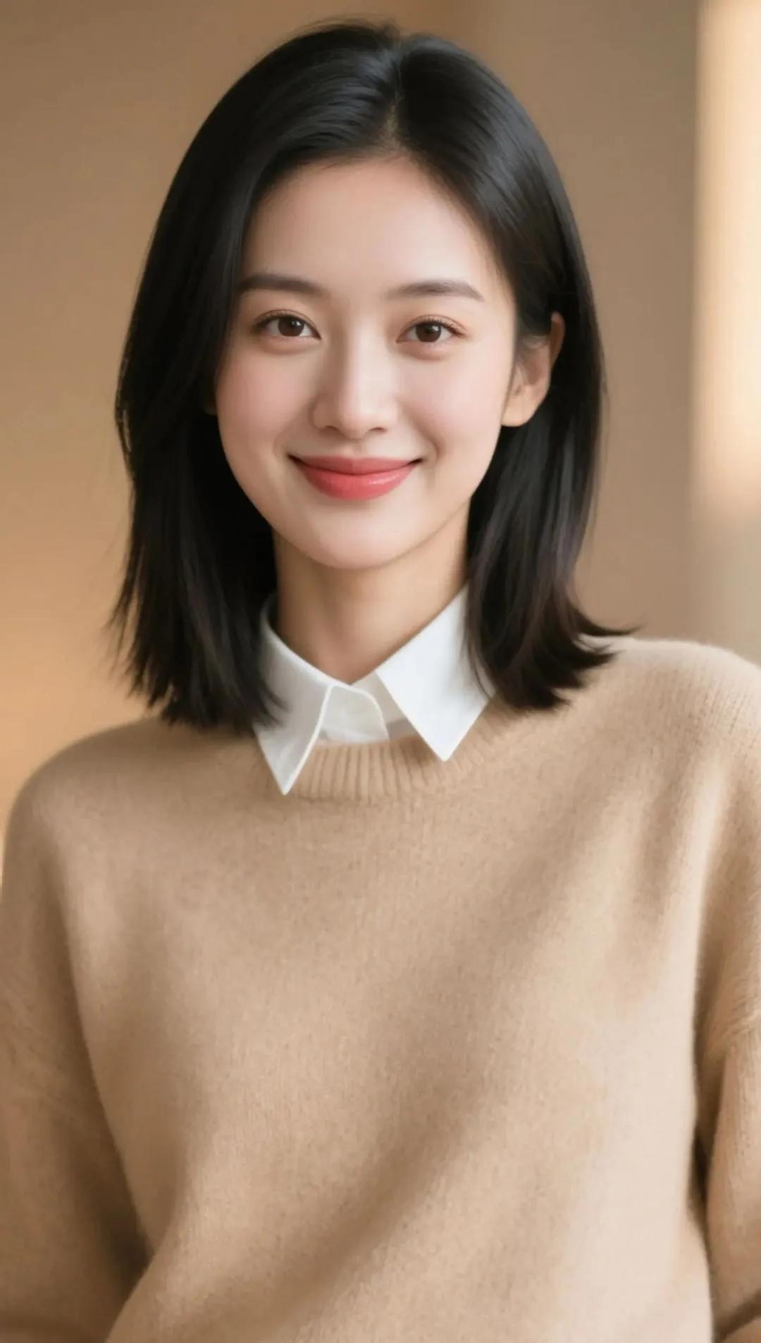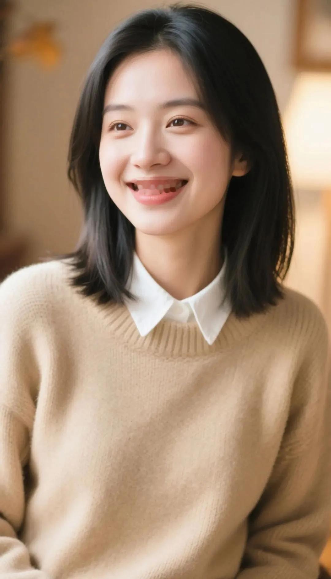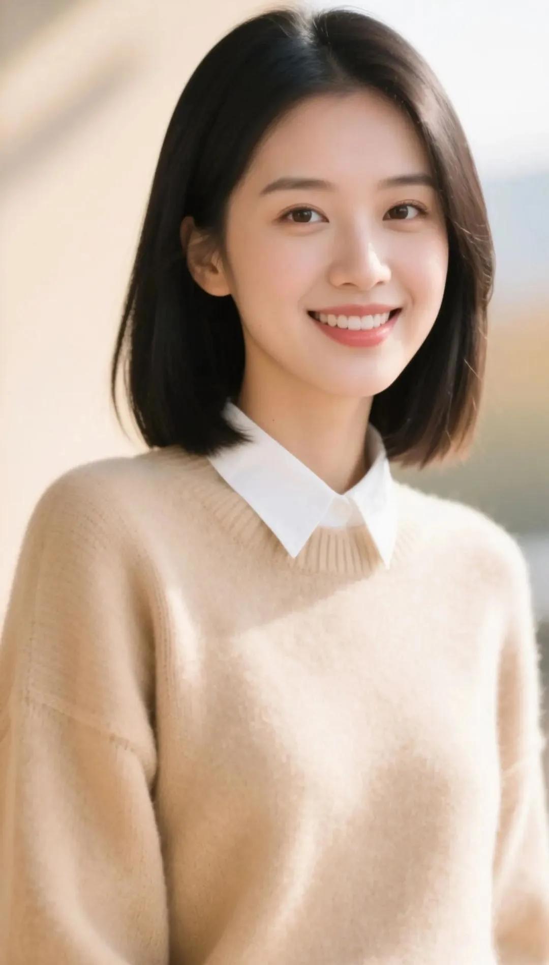 阳光明媚的午后,绿意盎然的公园里,一位微笑的姑娘,清新自然,如春风拂面。