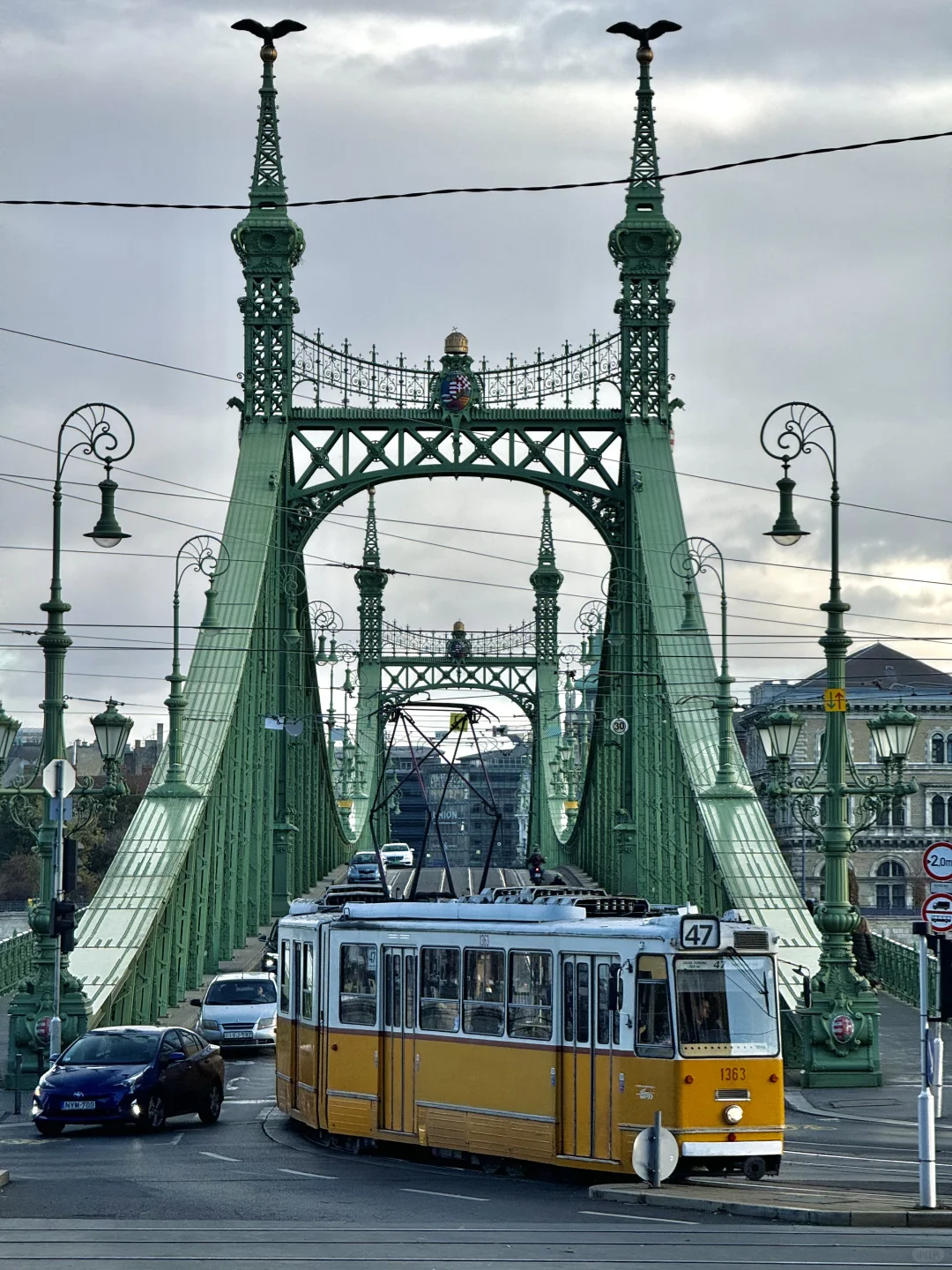 自由桥,可以导航“布达佩斯中央市场”,从桥这边拍更好看。
