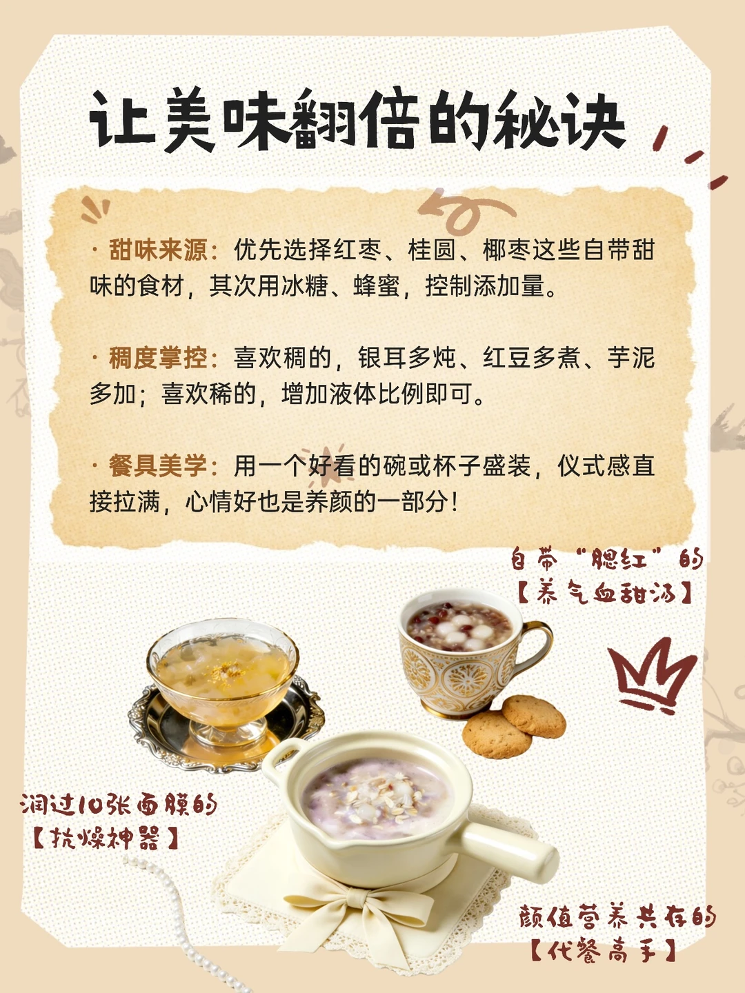 ✨ 一碗美颜羹 = 基础羹体 + 功效食材 + 风味点睛